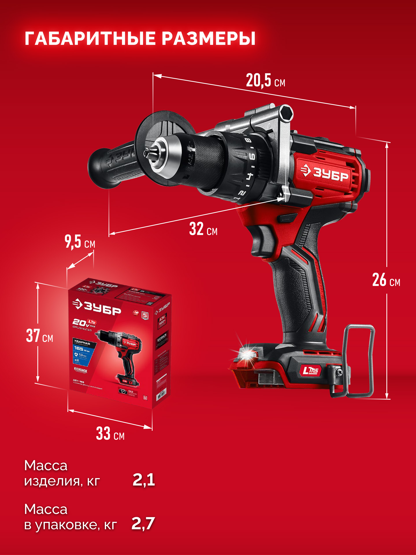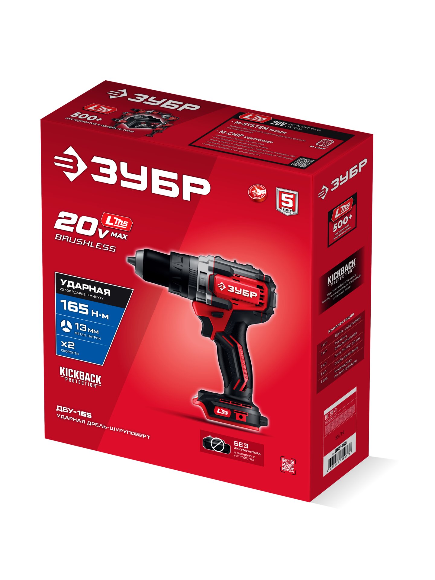 Бесщеточная ударная дрель-шуруповерт ЗУБР системы LMS с максимальным крутящим моментом 165 Нм предназначена для работы с самым крупным крепежом (саморезы до 12 мм диаметром) и сверления отверстий до 40 мм в дереве. Встроенная защита от обратного удара предотвращает повреждение кисти при резкой блокировке вала. Расширенная функциональность за счет ударного режима работы