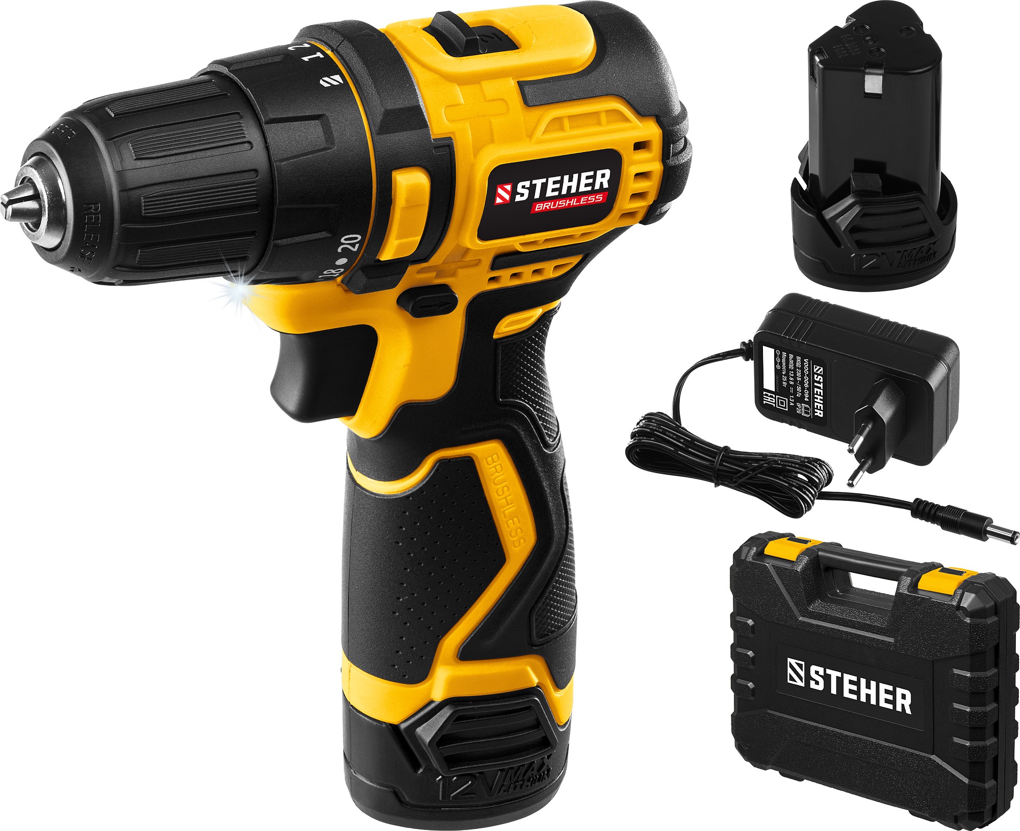 - Компактная аккумуляторная дрель-шуруповерт с двигателем BRUSHLESS