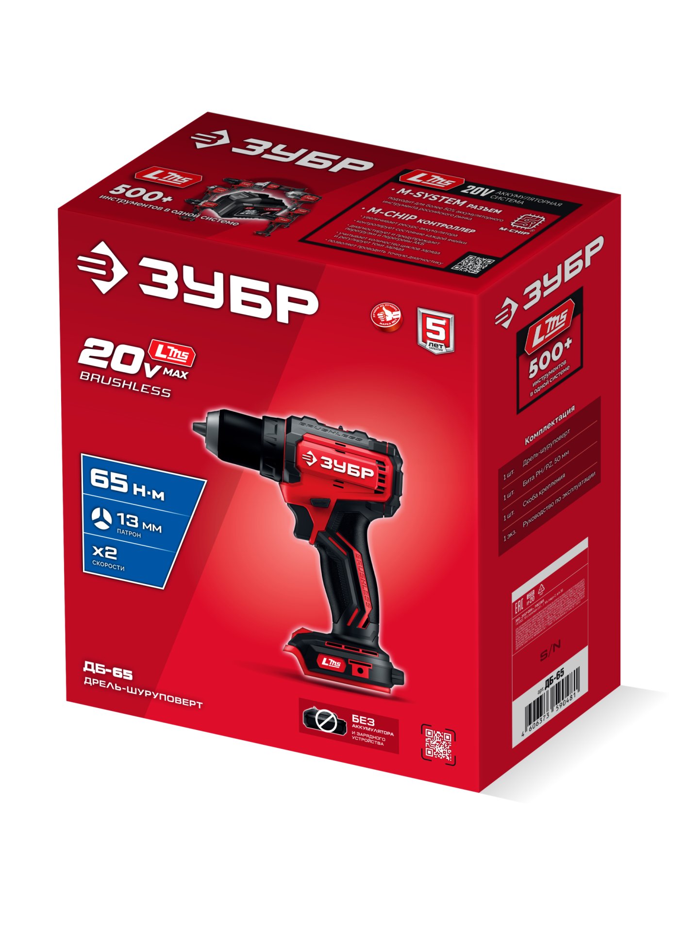 Бесщеточная дрель-шуруповерт ЗУБР системы LMS с увеличенным крутящим моментом предназначена для быстрого заворачивания саморезов до 8 мм диаметром и сверления отверстий до 30 мм в дереве. Длительная работа от одного заряда обеспечивается эффективным двигателем BRUSHLESS