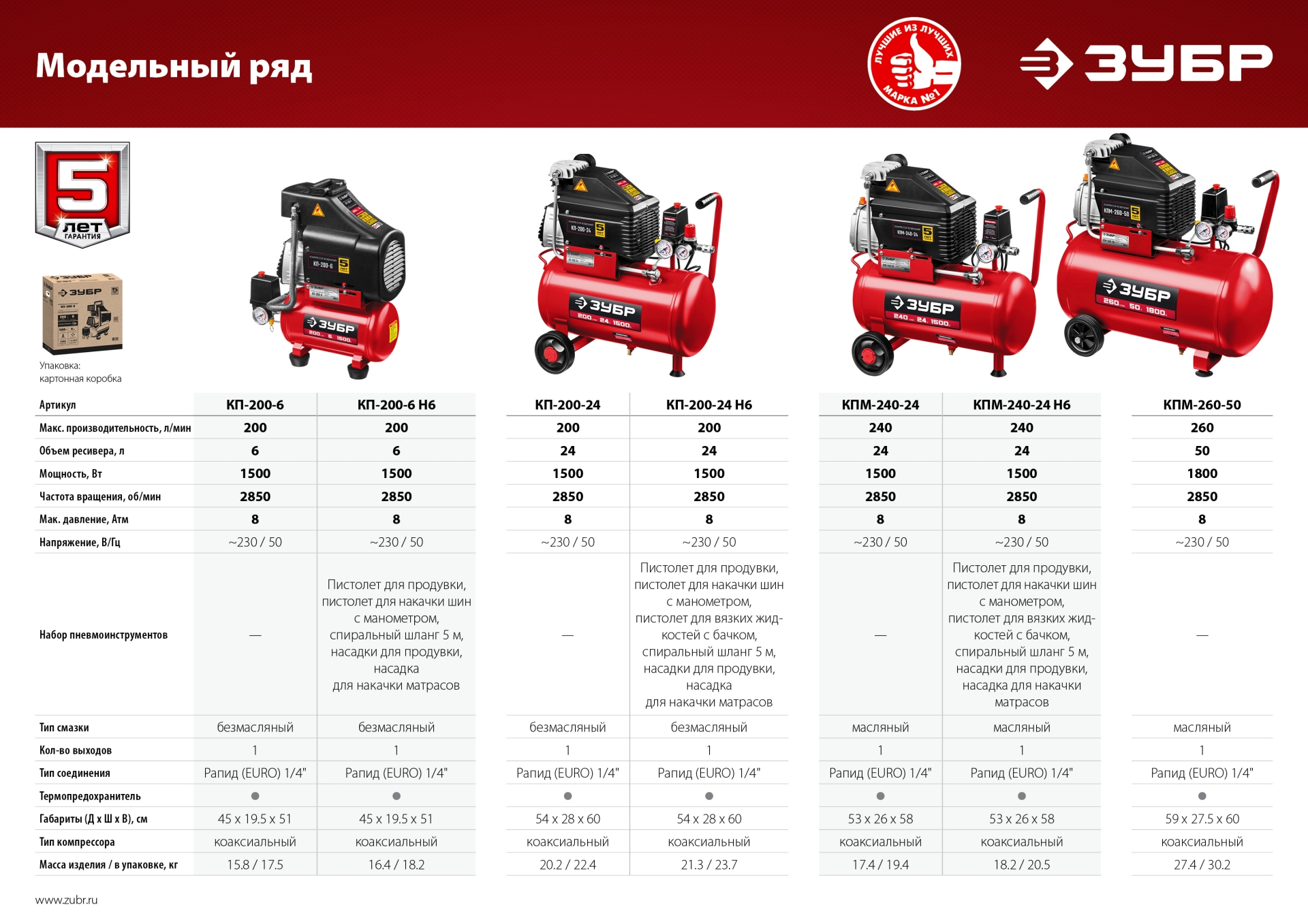 Качественное и надежное переносное оборудование для периодических работ дома, на даче, в небольшой мастерской, а так же для регулярной очистки от пыли офисной и бытовой техники . Безмасляный компрессор - это чистый, без примесей масла, воздух на выходе. При правильной эксплуатации ресурс данных компрессоров составляет не менее 1000 часов*. * на основании результатов испытаний лаборатории компании АО «ЗУБР ОВК»