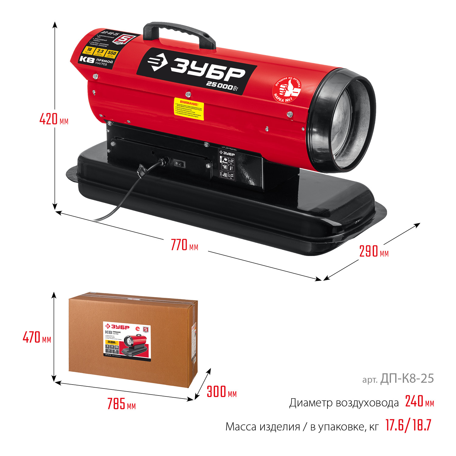 ЗУБР 25 кВт, дизельная тепловая пушка, прямой нагрев (ДП-К8-25)
