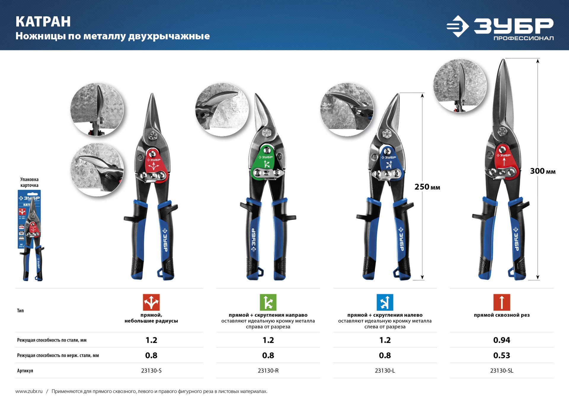 Профессиональный инструмент для реза листового металла, режущая способность: сталь - 1.2 мм, нерж. - 0.8 мм