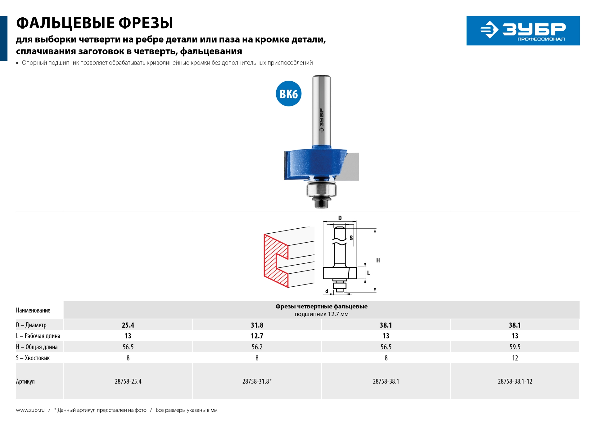 Фреза отлично подходит для выборки пазов четвертей на кромках и торцах деталей при работе с различными видами древесины.