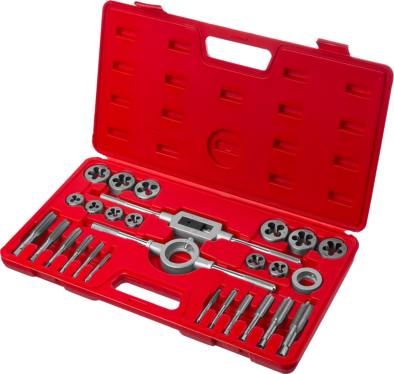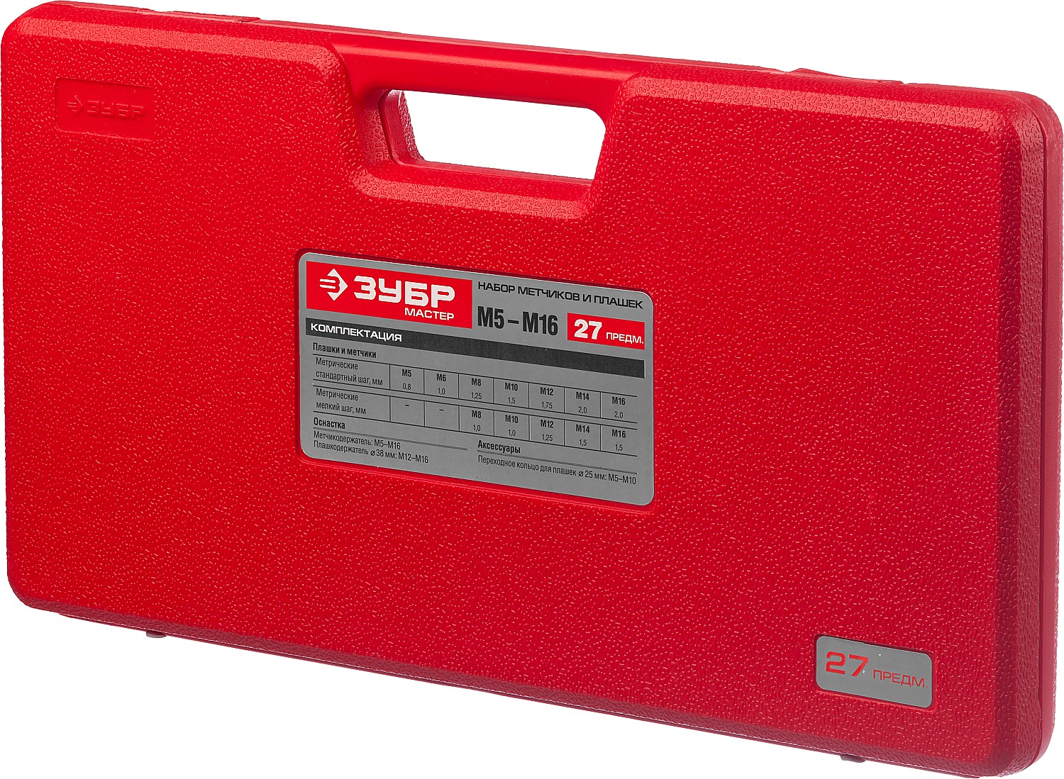 ЗУБР 27 предм., сталь 9ХС, набор метчиков и плашек в пластиковом боксе (28123-H27)