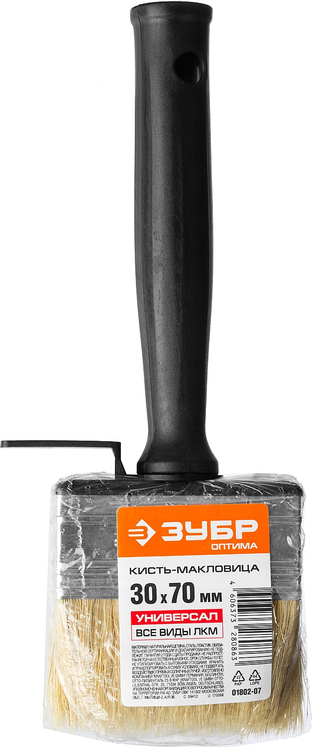 ЗУБР 30 х 70 мм, светлая щетина, пластмассовый корпус, все виды ЛКМ, кисть-макловица (01802-07