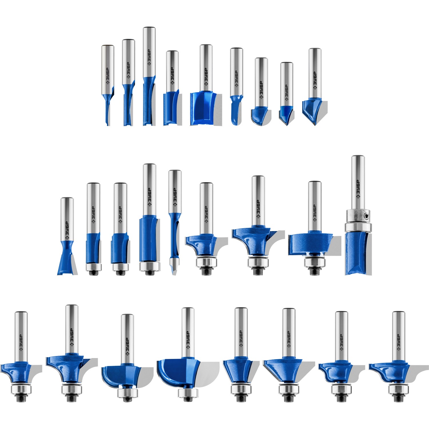 Набор фрез отлично подходит для профилирования кромок, изготовления декоративных пазов и рисунков, фрезерования канавок при работе с различными видами древесины.