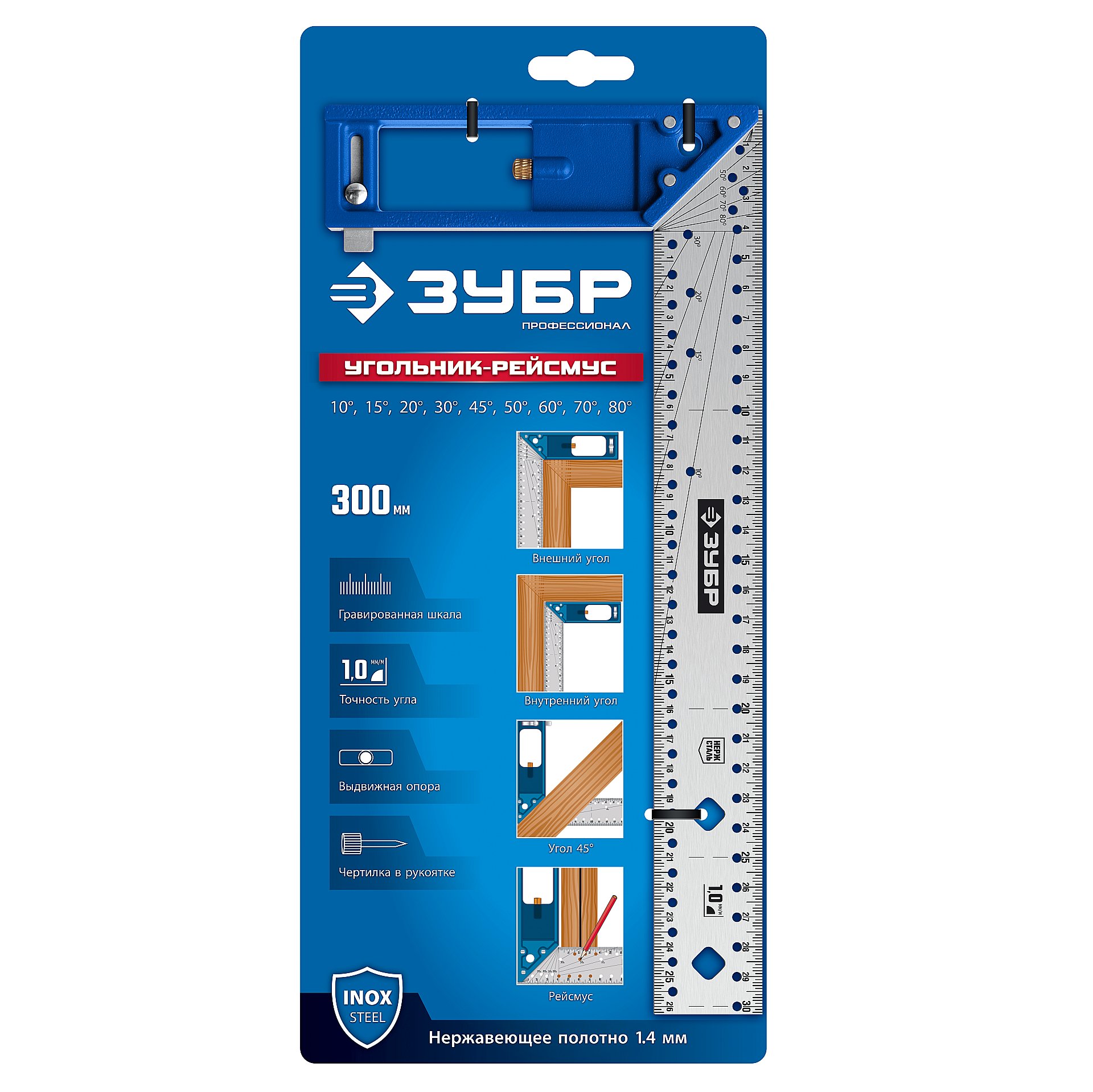 Усиленный профессиональный угольник-рейсмус с выдвижным упором. Используется для, проведения разметочных и замерочных работ. Отверстия в полотне позволяют размечать как паралельные линии с шагом 5 мм, так и дополнительные углы от 10 до 80 градусов.