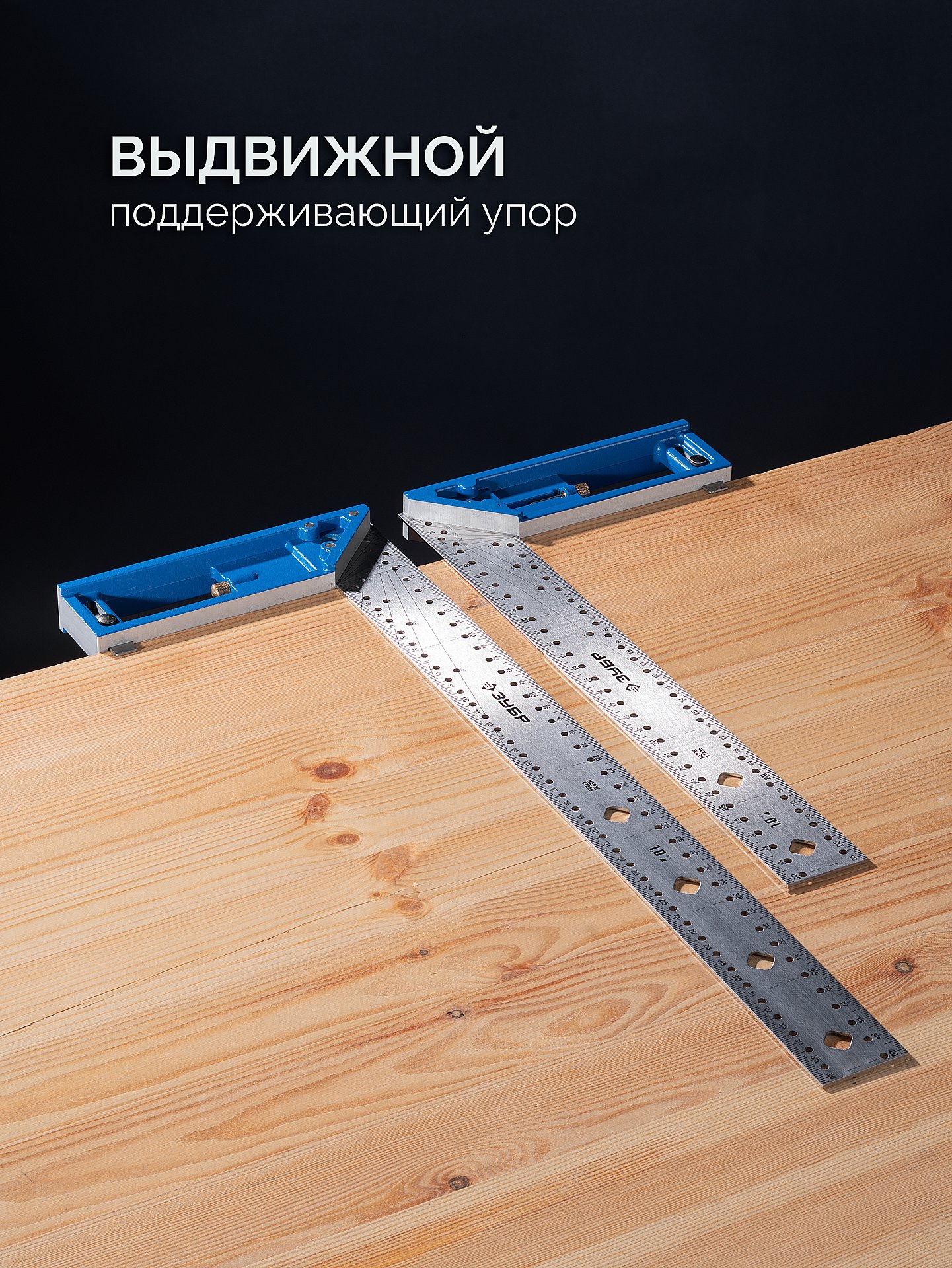 Для разметки параллельных линий, углов от 10° до 90° и контроля перпендикулярности конструкций при столярных и плотницких работах.