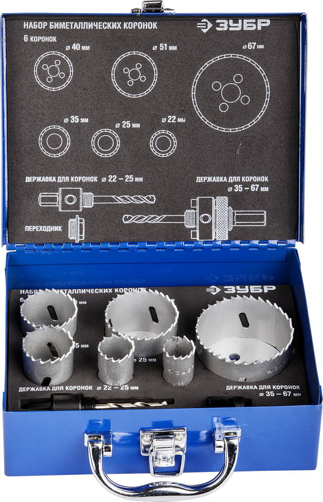 Оснастка для биметаллических коронок Зубр специально создана для реализации самых сложных задач в строительстве и производстве при сверлении металла, дерева, ДСП, гипсокартона и твёрдых пластмасс.
