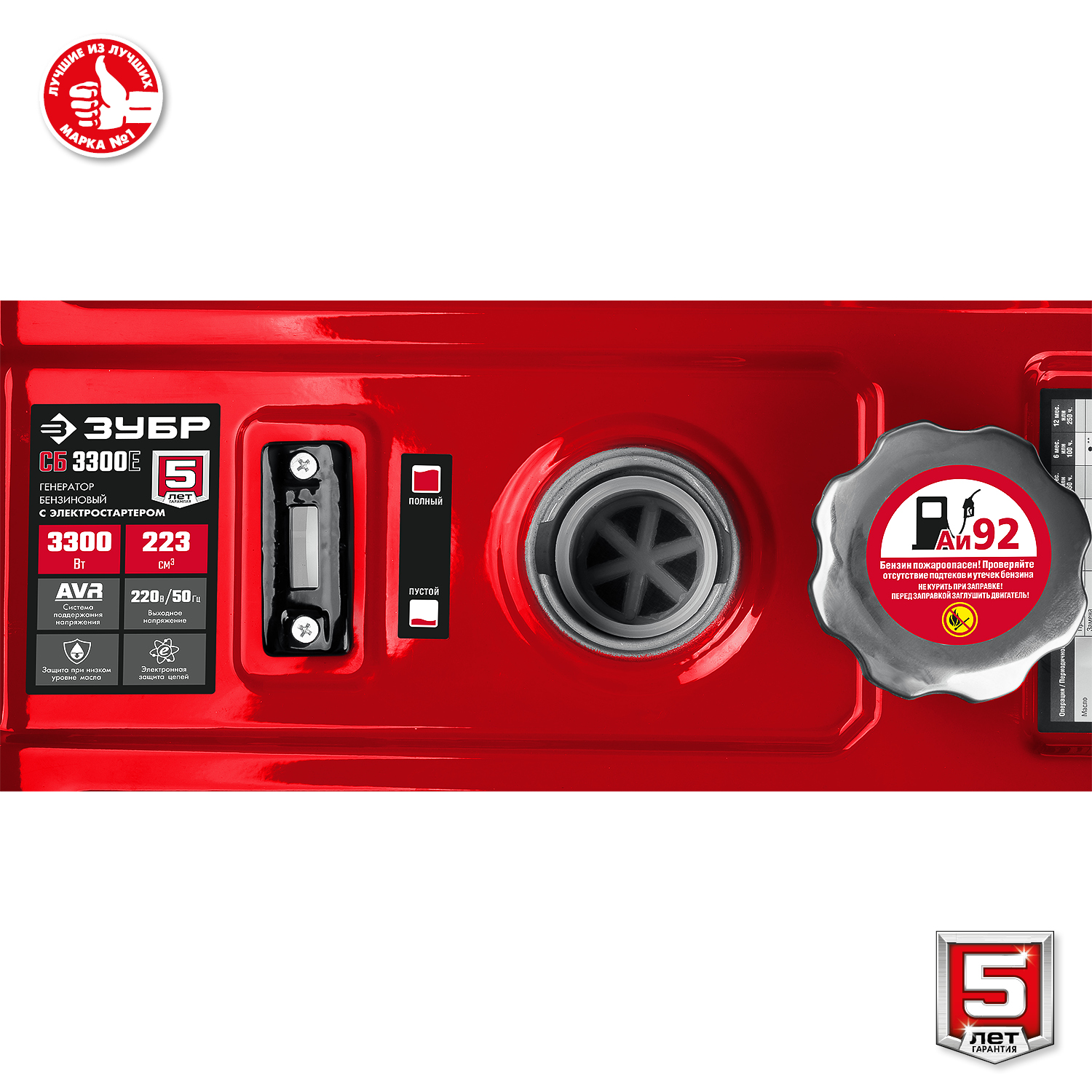 Сбалансированный по мощности генератор - может обеспечить практически любой потребитель в загородном доме во время перебоев с электроснабжением или служить дополнительным источником энергии при ограниченной мощности сети. Электрический стартер облегчает запуск, особенно в зимнее время. Высокий ресурс, низкое потребление топлива и повышенная надежность - основные достоинства генераторов ЗУБР. Аккумуляторная батарея не входит в комплект поставки. Емкость батареи не менее 7 А*ч.