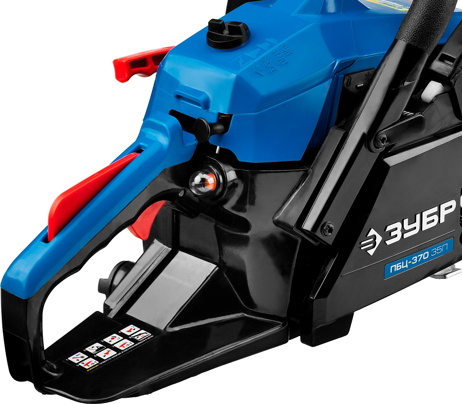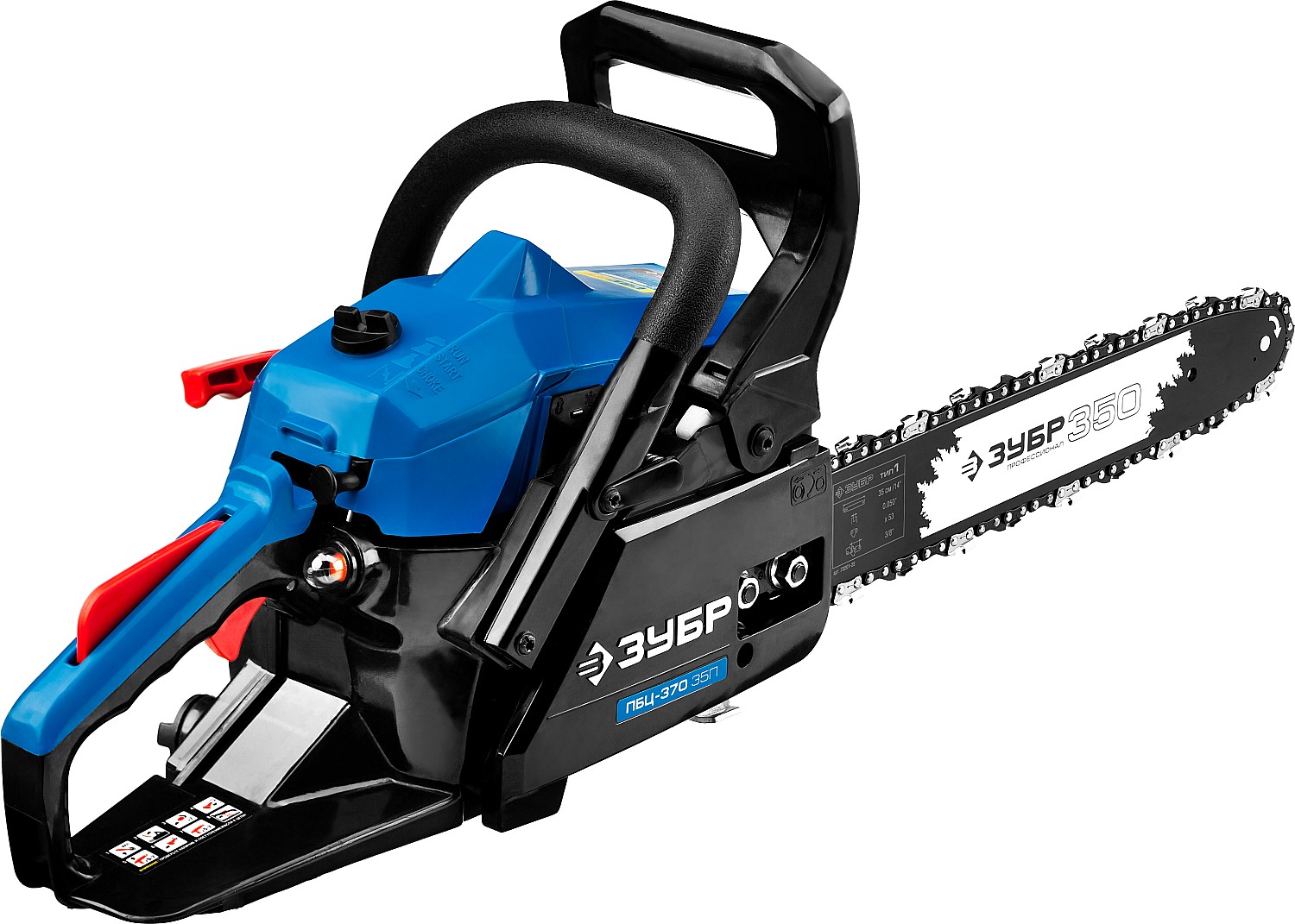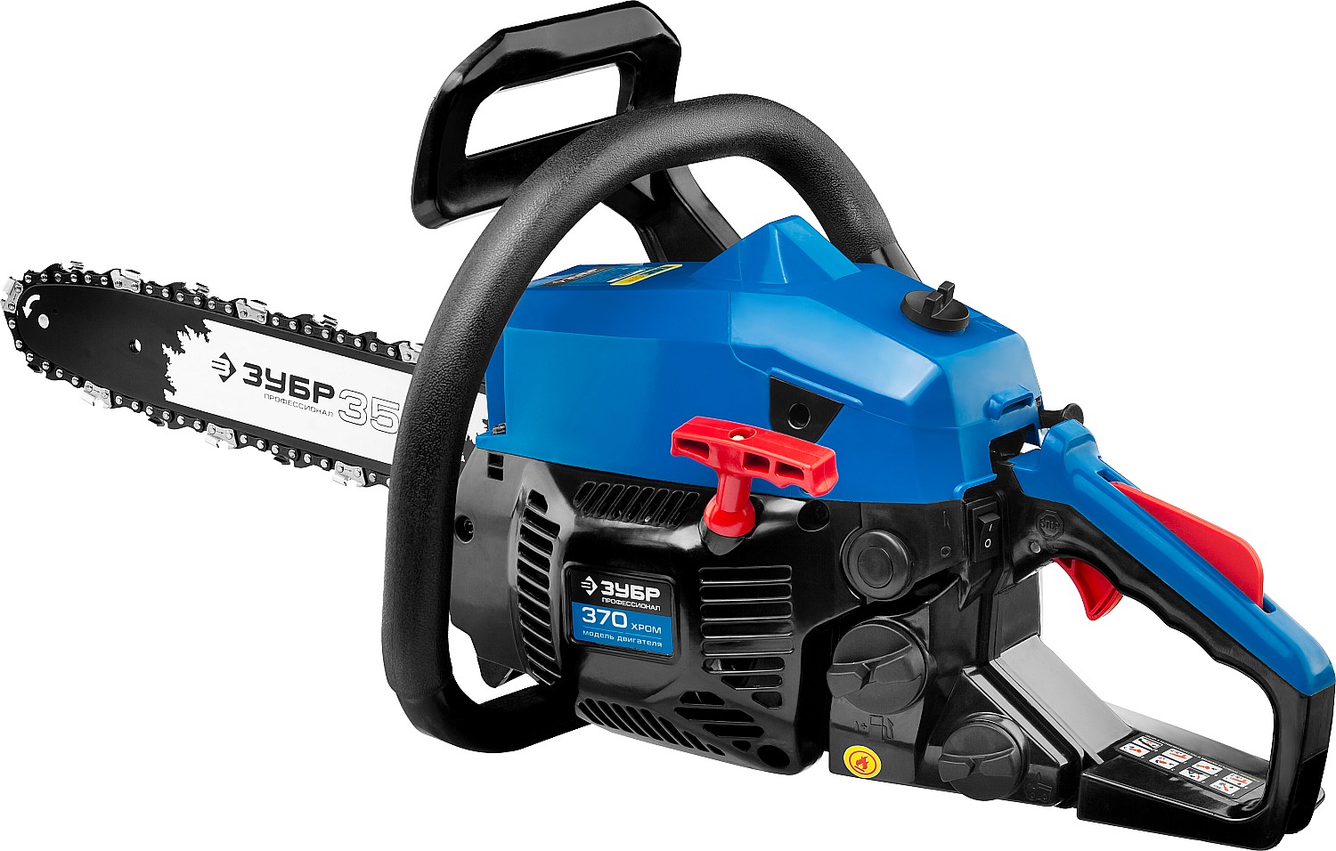 Идеальный вариант для пиления досок, бруса, стволов различных пород дерева на дачном участке. В отличие от электрической, бензиновая пила оснащена более мощным двигателем, безопасна в отношении поражения электрическим током, может работать в любую погоду и в любом месте. Функции легкого запуска, автоматической смазки цепи и эффективная антивибрационная защита делают пилу легкой в обращении и комфортной в работе. Двойной тормоз цепи, приводимый в действие при откидывании защитного щитка или при отпускании клавиши блокировки на рукоятке, а также встроенный цепеуловитель и металлический упор делают пилу безопасной в применении. Большая удельная мощность, высокое качество применяемых материалов и изготовления, обеспечивающие увеличенный ресурс, делают бензиновую пилу ЗУБР Вашим лучшим помощником