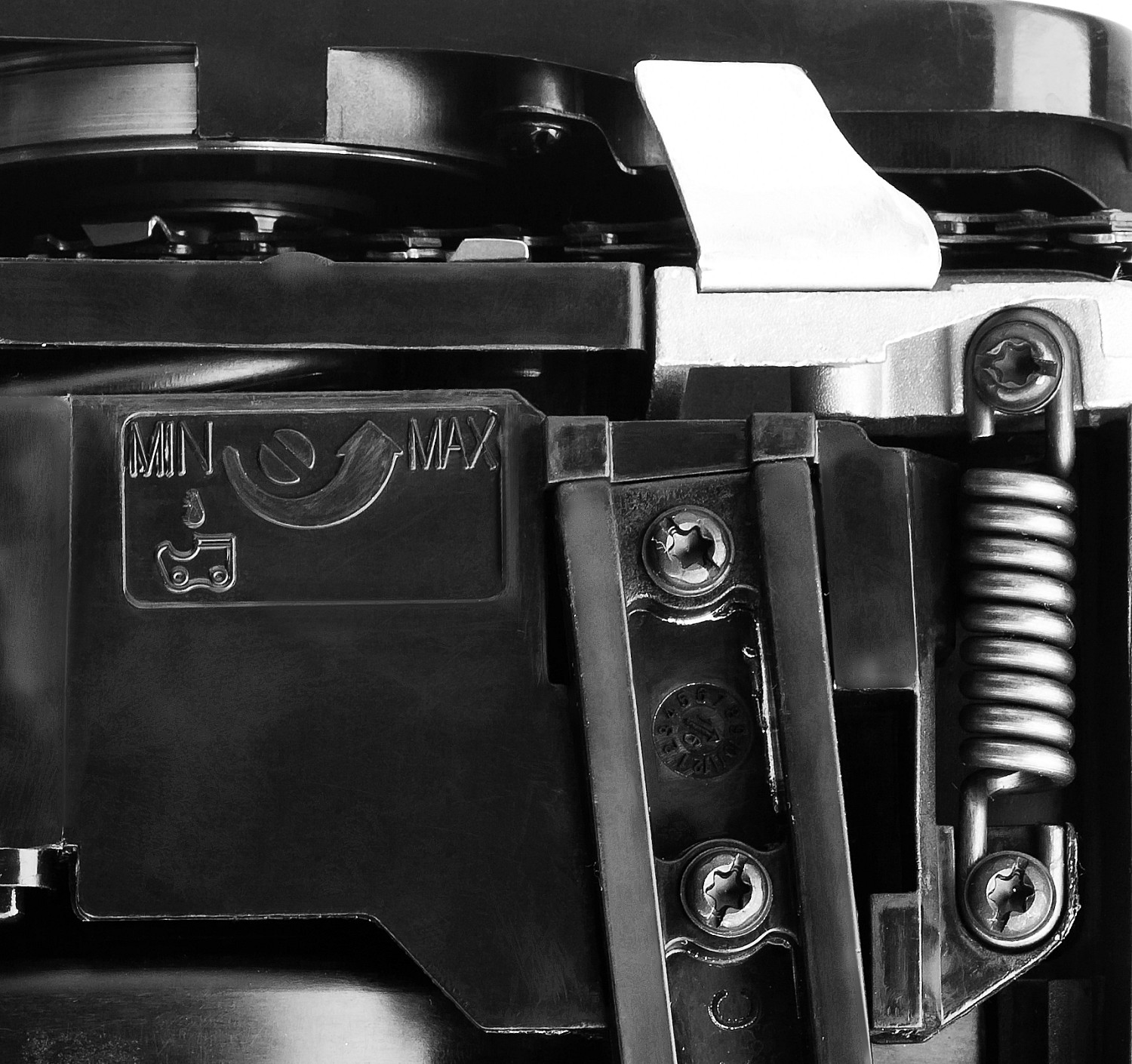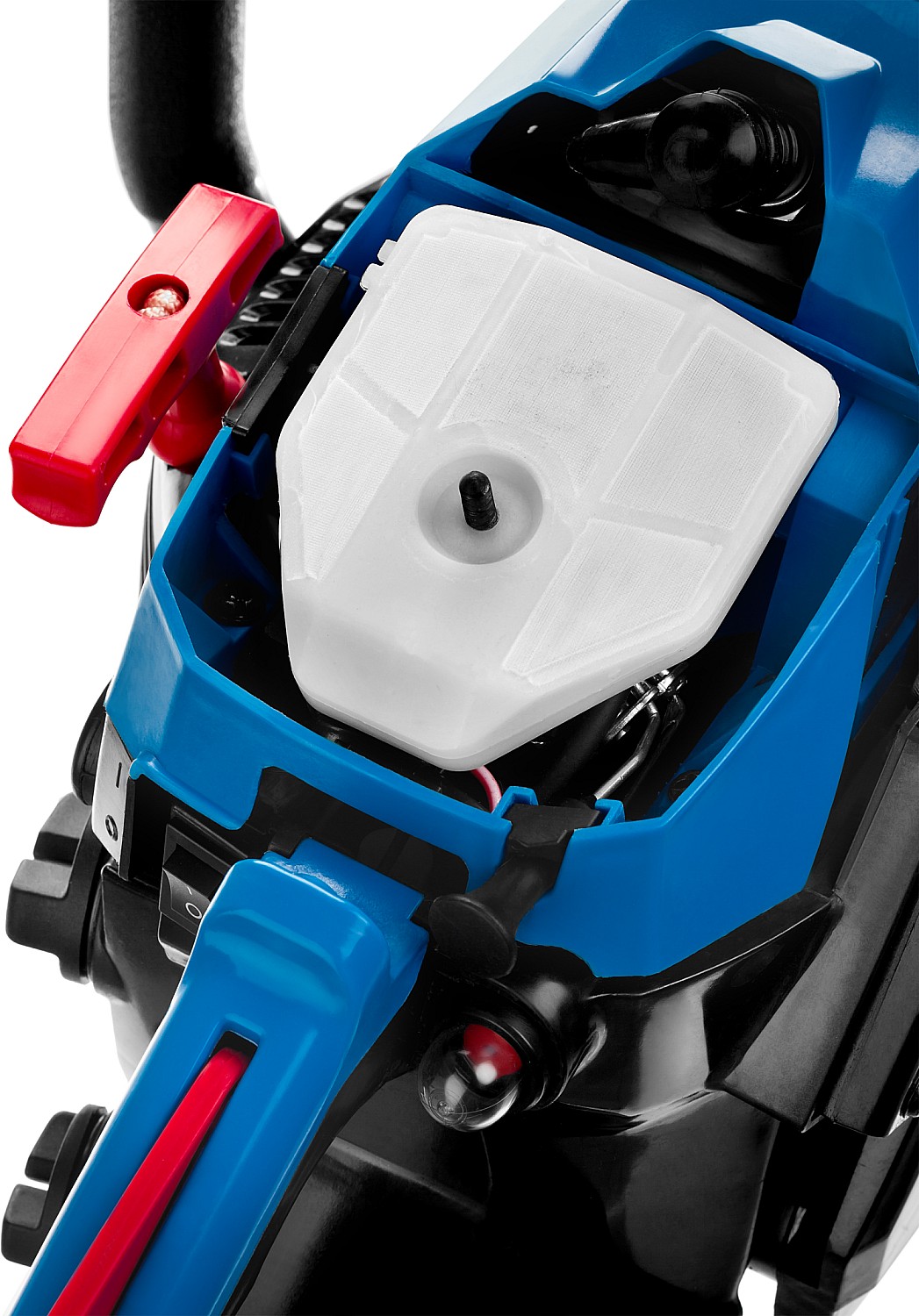 - Автоматическая система смазки цепи дозированно подает масло, в зависимости от нагрузки и отключает подачу масло на холостых оборотах