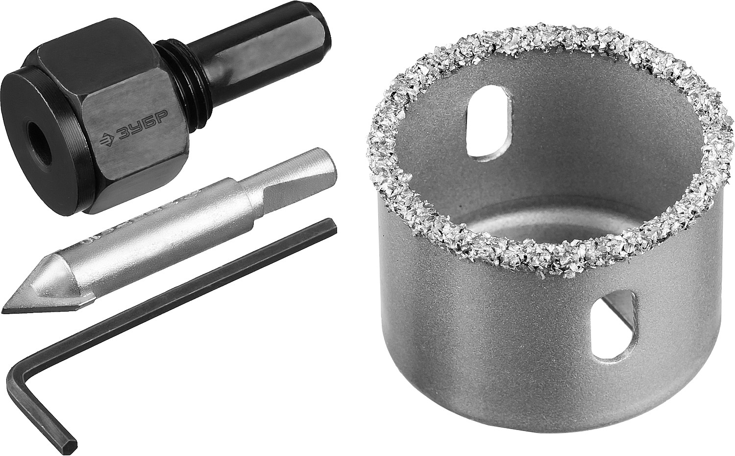 Применяется для получения ровных отверстий в облицовочных материалах, а также в ячеистом бетоне, кирпиче и гипсокартоне. Используется на дрелях и легких перфораторах в режимме безударного сверления.