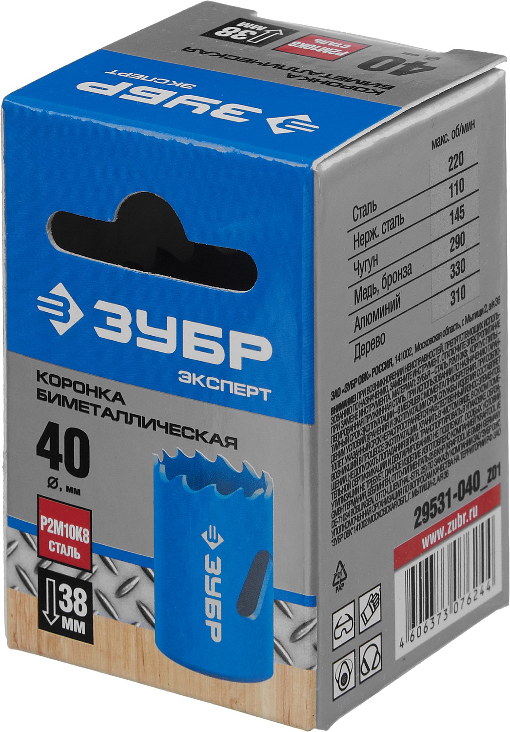 ЗУБР 40 мм, сталь Р6М5, биметаллическая коронка (29531-040)