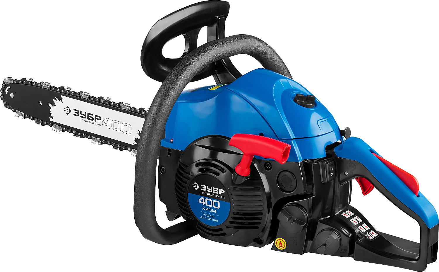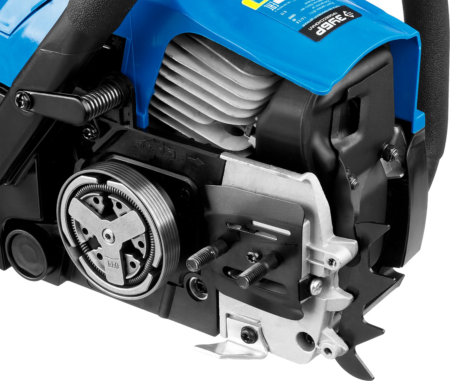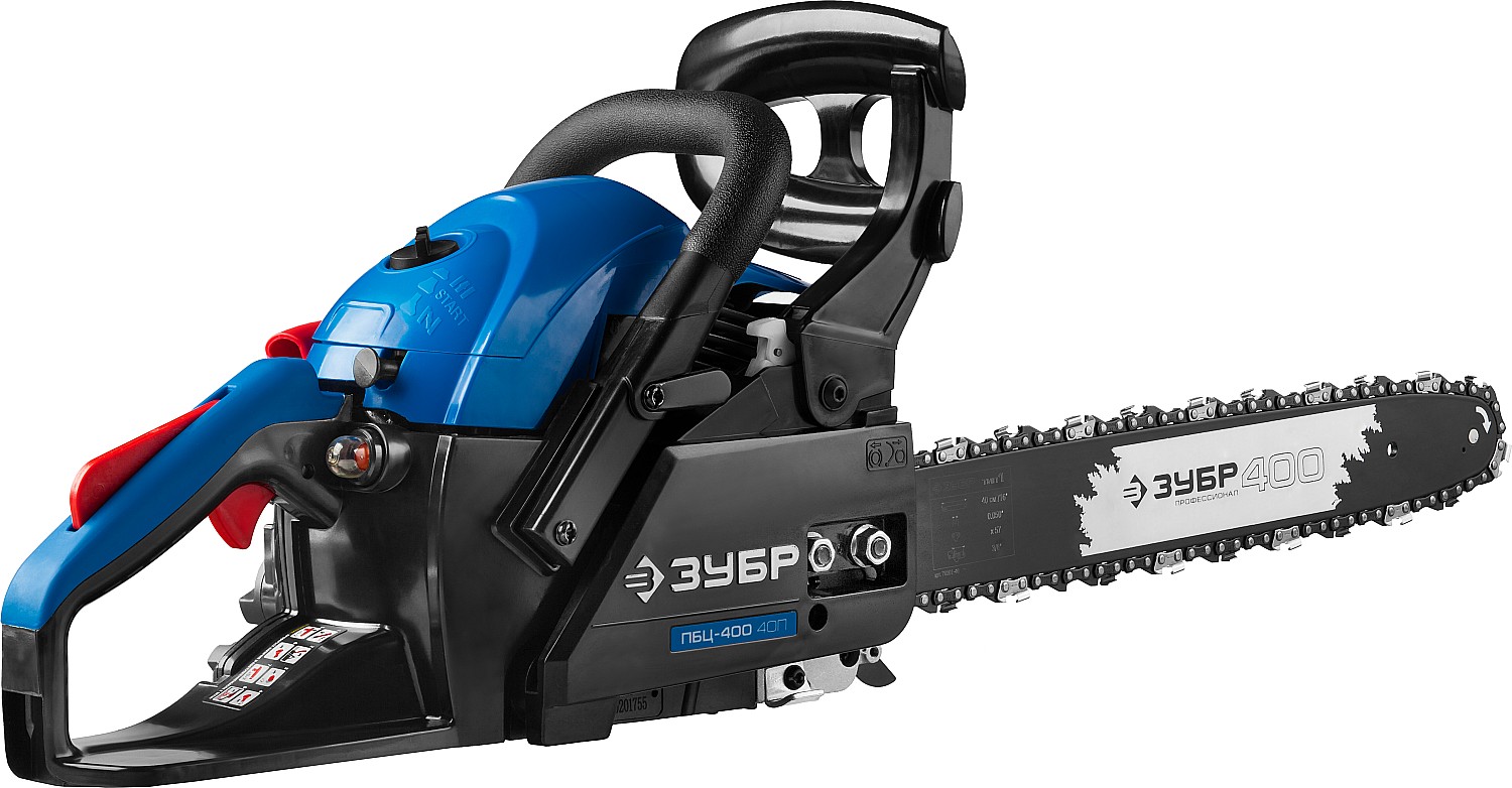 Идеальный вариант для пиления досок, бруса, стволов различных пород дерева на дачном участке. В отличие от электрической, бензиновая пила оснащена более мощным двигателем, безопасна в отношении поражения электрическим током, может работать в любую погоду и в любом месте. Функции легкого запуска, автоматической смазки цепи и эффективная антивибрационная защита делают пилу легкой в обращении и комфортной в работе. Двойной тормоз цепи, приводимый в действие при откидывании защитного щитка или при отпускании клавиши блокировки на рукоятке, а также встроенный цепеуловитель и металлический упор делают пилу безопасной в применении. Большая удельная мощность, высокое качество применяемых материалов и изготовления, обеспечивающие увеличенный ресурс, делают бензиновую пилу ЗУБР Вашим лучшим помощником