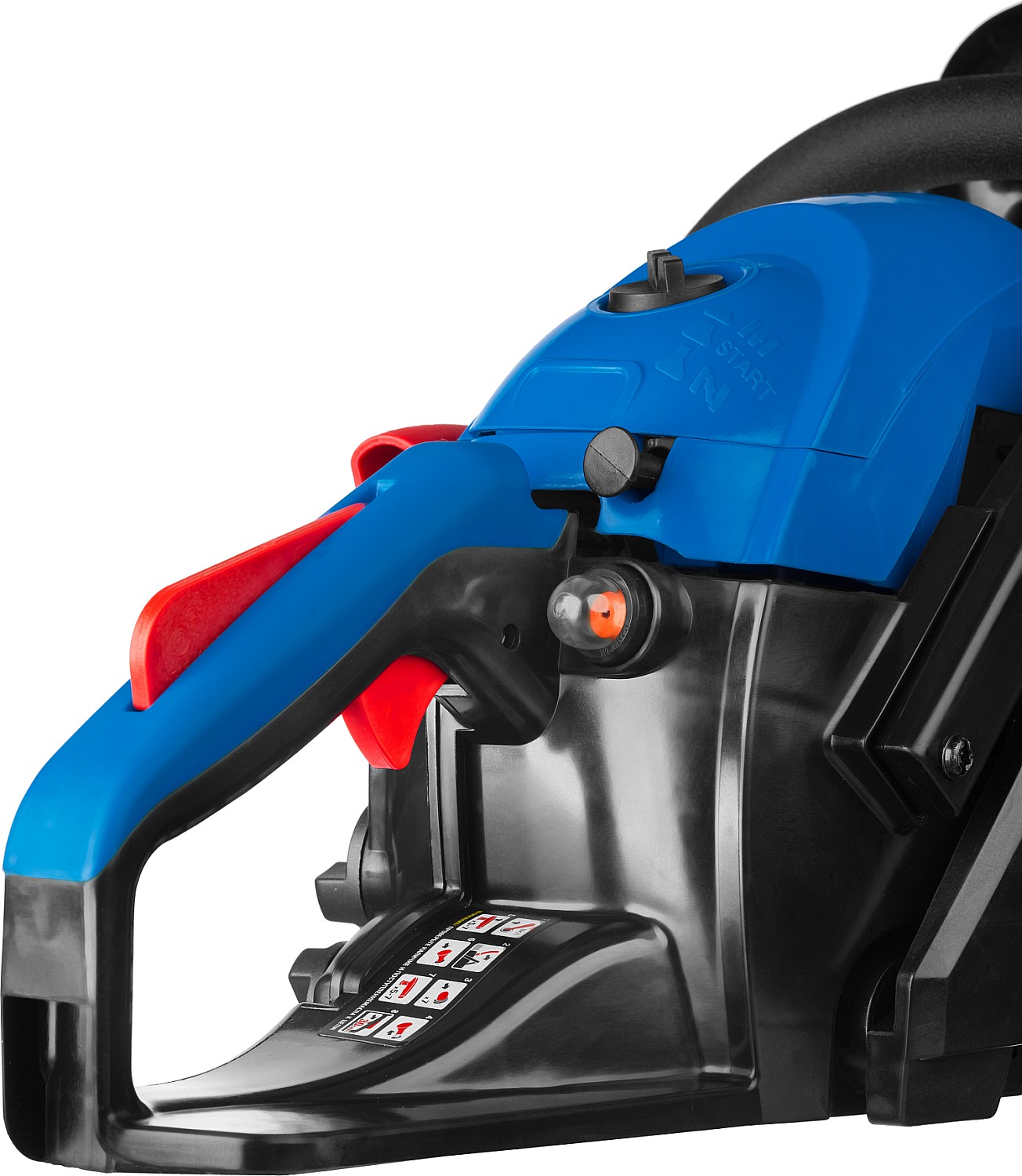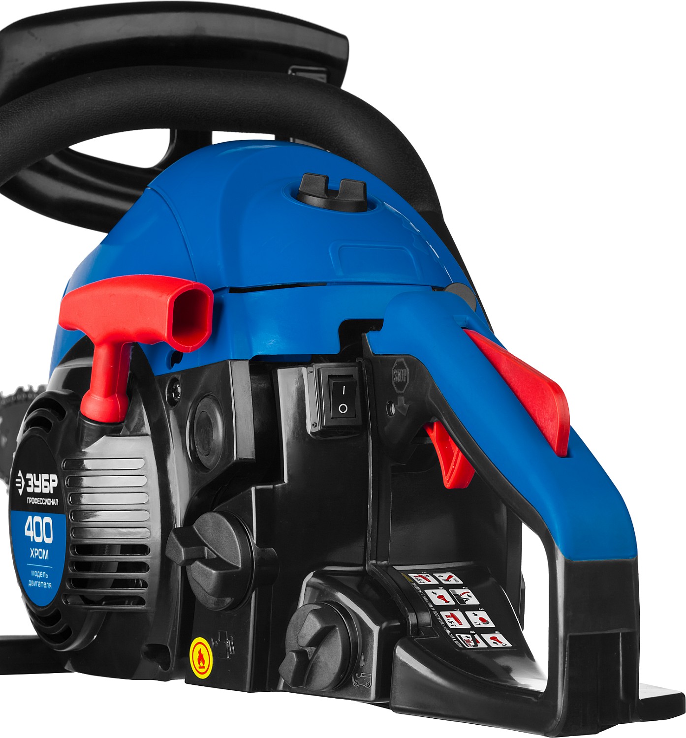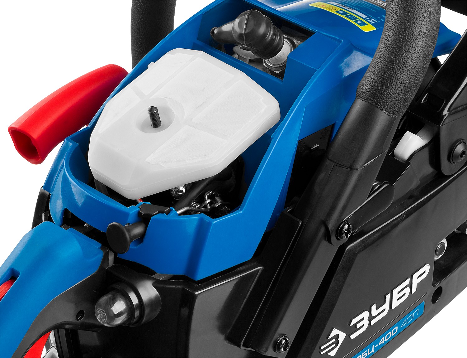 Идеальный вариант для пиления досок, бруса, стволов различных пород дерева на дачном участке. В отличие от электрической, бензиновая пила оснащена более мощным двигателем, безопасна в отношении поражения электрическим током, может работать в любую погоду и в любом месте. Функции легкого запуска, автоматической смазки цепи и эффективная антивибрационная защита делают пилу легкой в обращении и комфортной в работе. Двойной тормоз цепи, приводимый в действие при откидывании защитного щитка или при отпускании клавиши блокировки на рукоятке, а также встроенный цепеуловитель и металлический упор делают пилу безопасной в применении. Большая удельная мощность, высокое качество применяемых материалов и изготовления, обеспечивающие увеличенный ресурс, делают бензиновую пилу ЗУБР Вашим лучшим помощником