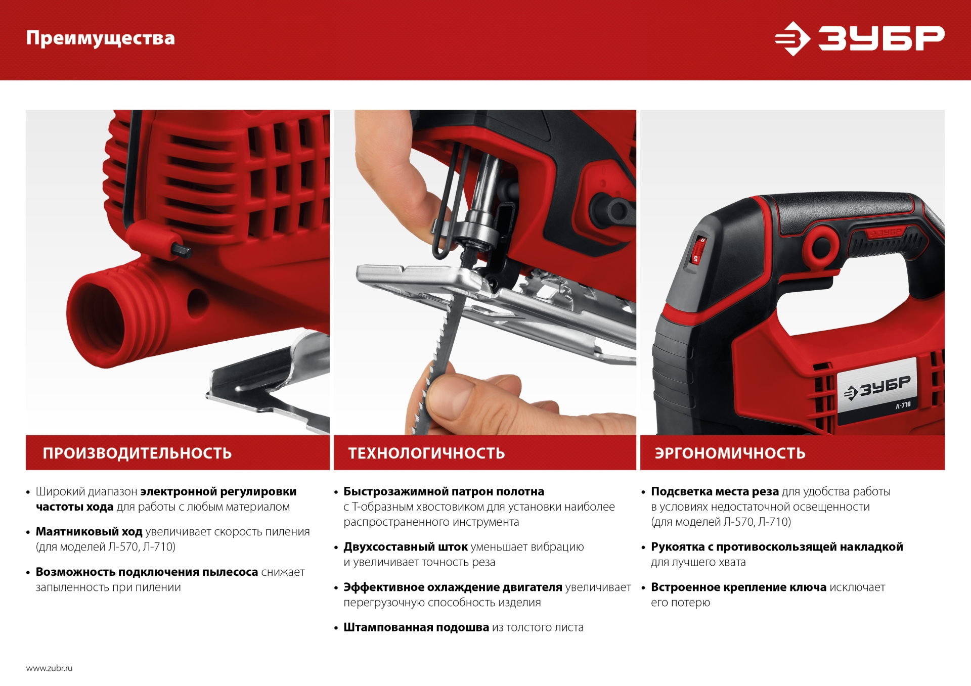 - Электронная регулировка частоты хода в широком диапазоне для пиления различных материалов