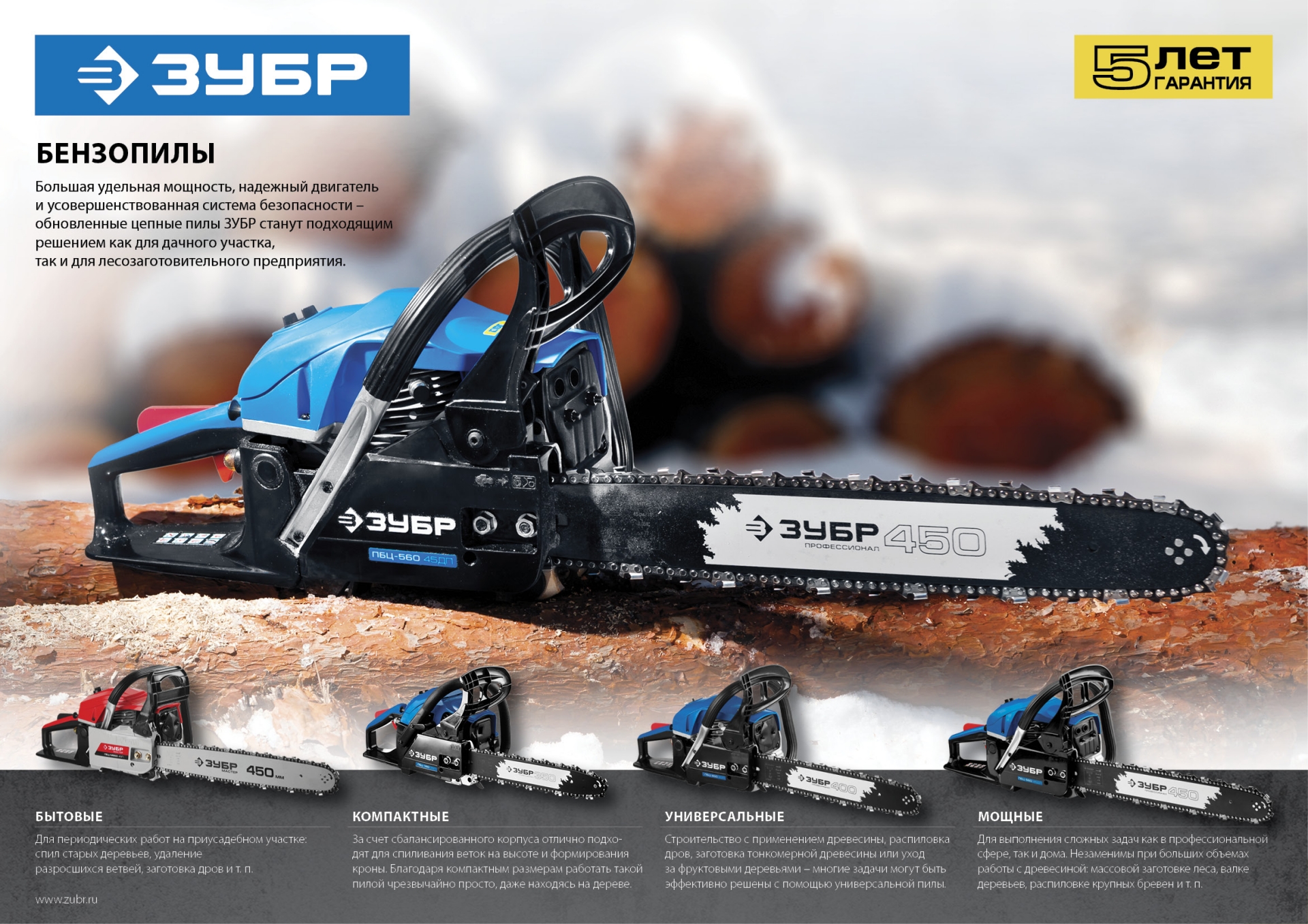 Идеальный вариант для пиления досок, бруса, стволов различных пород дерева на дачном участке. В отличие от электрической, бензиновая пила оснащена более мощным двигателем, безопасна в отношении поражения электрическим током, может работать в любую погоду и в любом месте. Функции легкого запуска, автоматической смазки цепи и эффективная антивибрационная защита делают пилу легкой в обращении и комфортной в работе. Двойной тормоз цепи, приводимый в действие при откидывании защитного щитка или при отпускании клавиши блокировки на рукоятке, а также встроенный цепеуловитель и металлический упор делают пилу безопасной в применении. Большая удельная мощность, высокое качество применяемых материалов и изготовления, обеспечивающие увеличенный ресурс, делают бензиновую пилу ЗУБР Вашим лучшим помощником