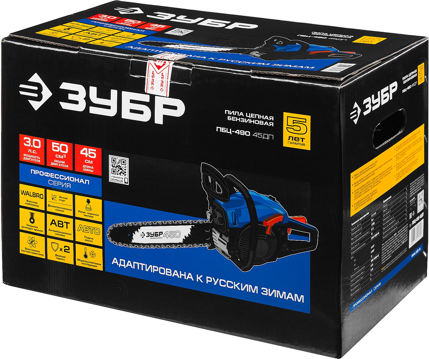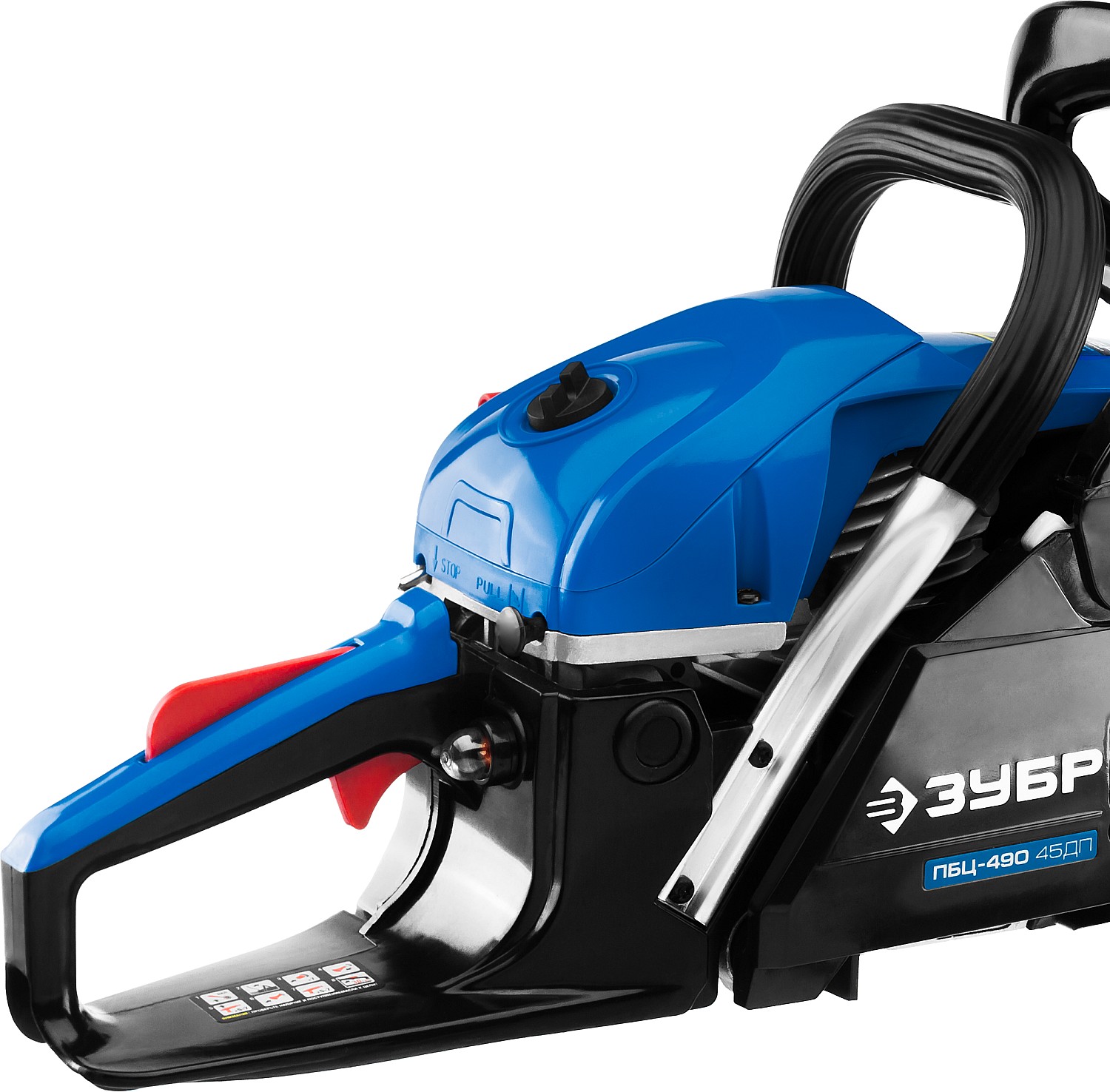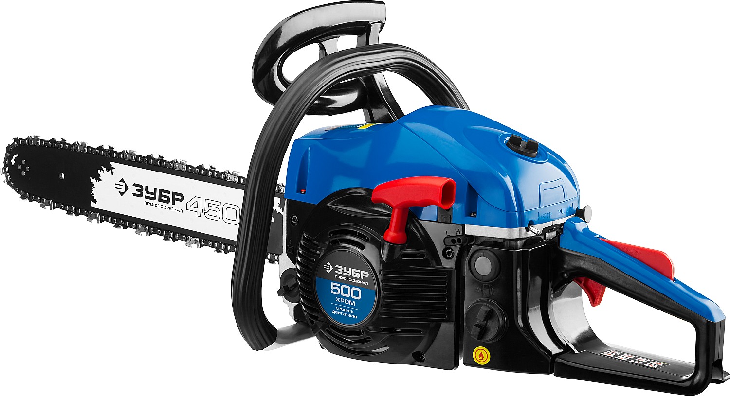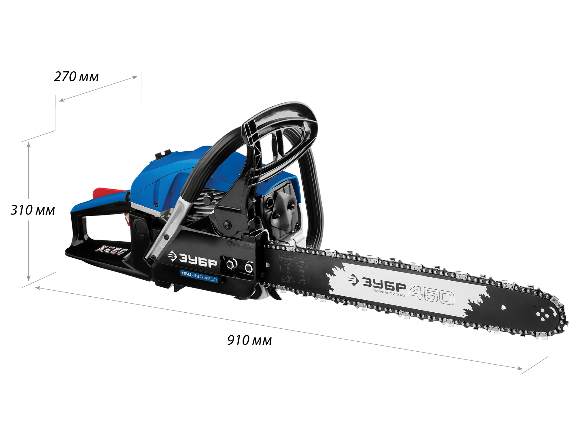Идеальный вариант для пиления досок, бруса, стволов различных пород дерева на дачном участке. В отличие от электрической, бензиновая пила оснащена более мощным двигателем, безопасна в отношении поражения электрическим током, может работать в любую погоду и в любом месте. Функции легкого запуска, автоматической смазки цепи и эффективная антивибрационная защита делают пилу легкой в обращении и комфортной в работе. Двойной тормоз цепи, приводимый в действие при откидывании защитного щитка или при отпускании клавиши блокировки на рукоятке, а также встроенный цепеуловитель и металлический упор делают пилу безопасной в применении. Большая удельная мощность, высокое качество применяемых материалов и изготовления, обеспечивающие увеличенный ресурс, делают бензиновую пилу ЗУБР Вашим лучшим помощником