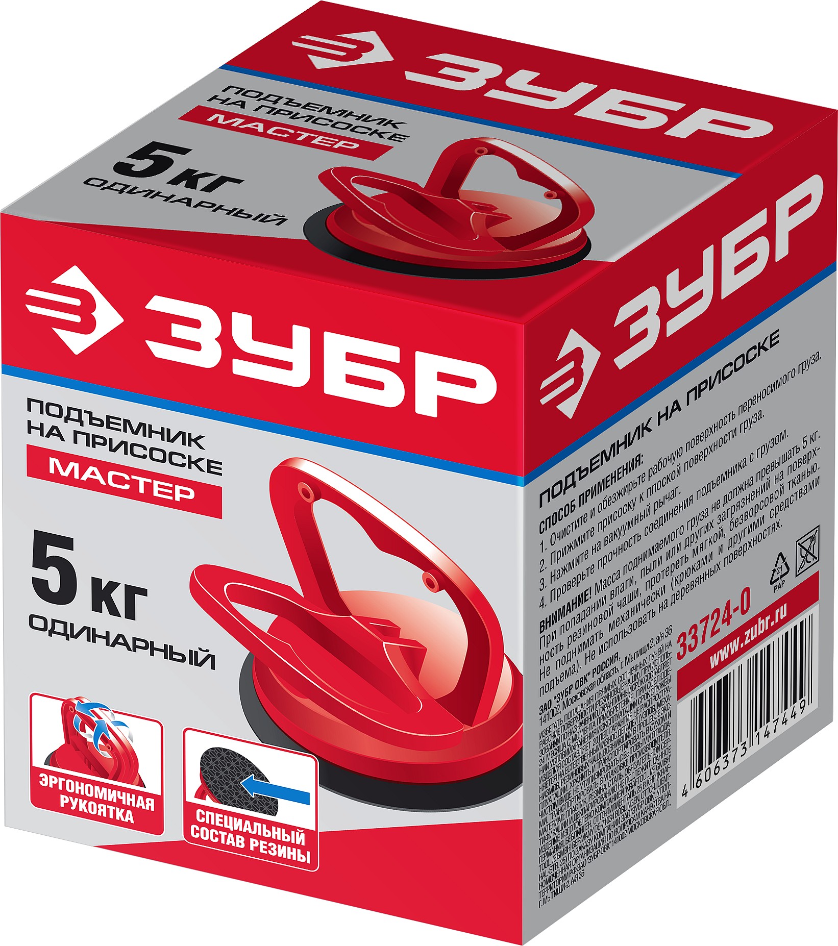 ЗУБР 5 кг, на присоске, одинарный пластмассовый подъемник (33724-0)