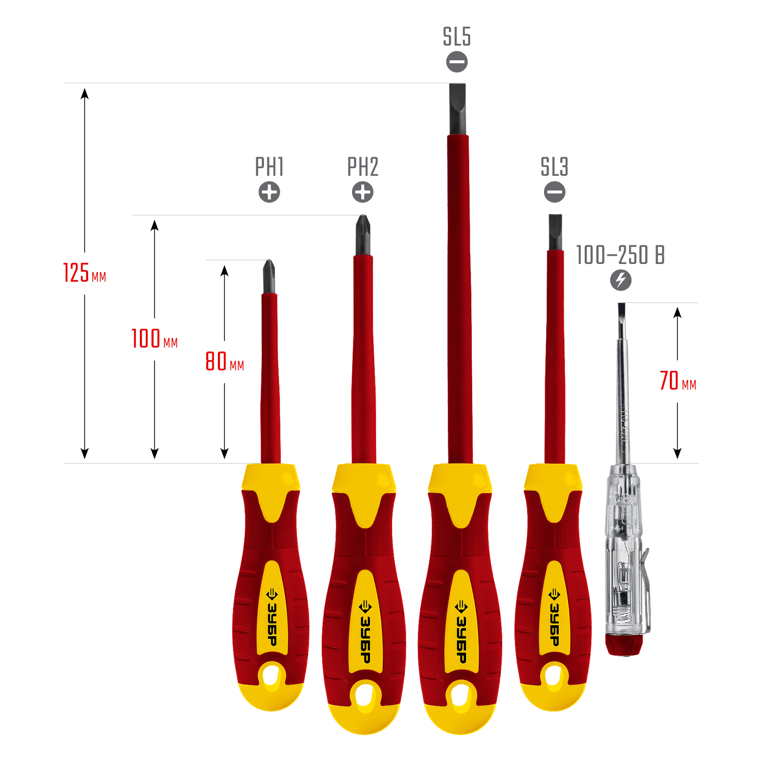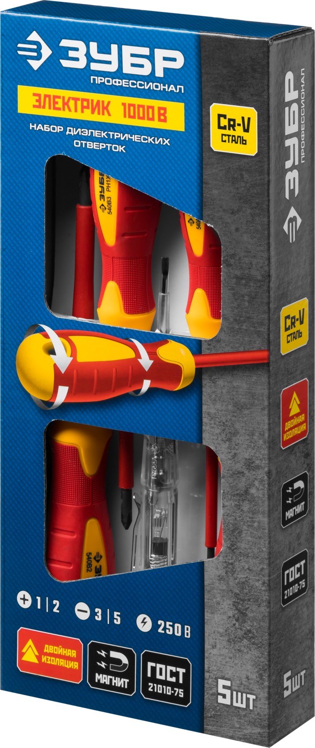ЗУБР 5 предм, набор диэлектрических отверток, Профессионал (25265)