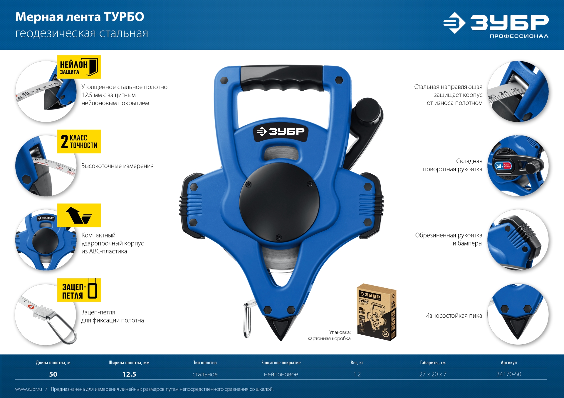 Профессиональная геодезическая мерная лента с защитным нейлоновым покрытием полотна и ускоренной смоткой