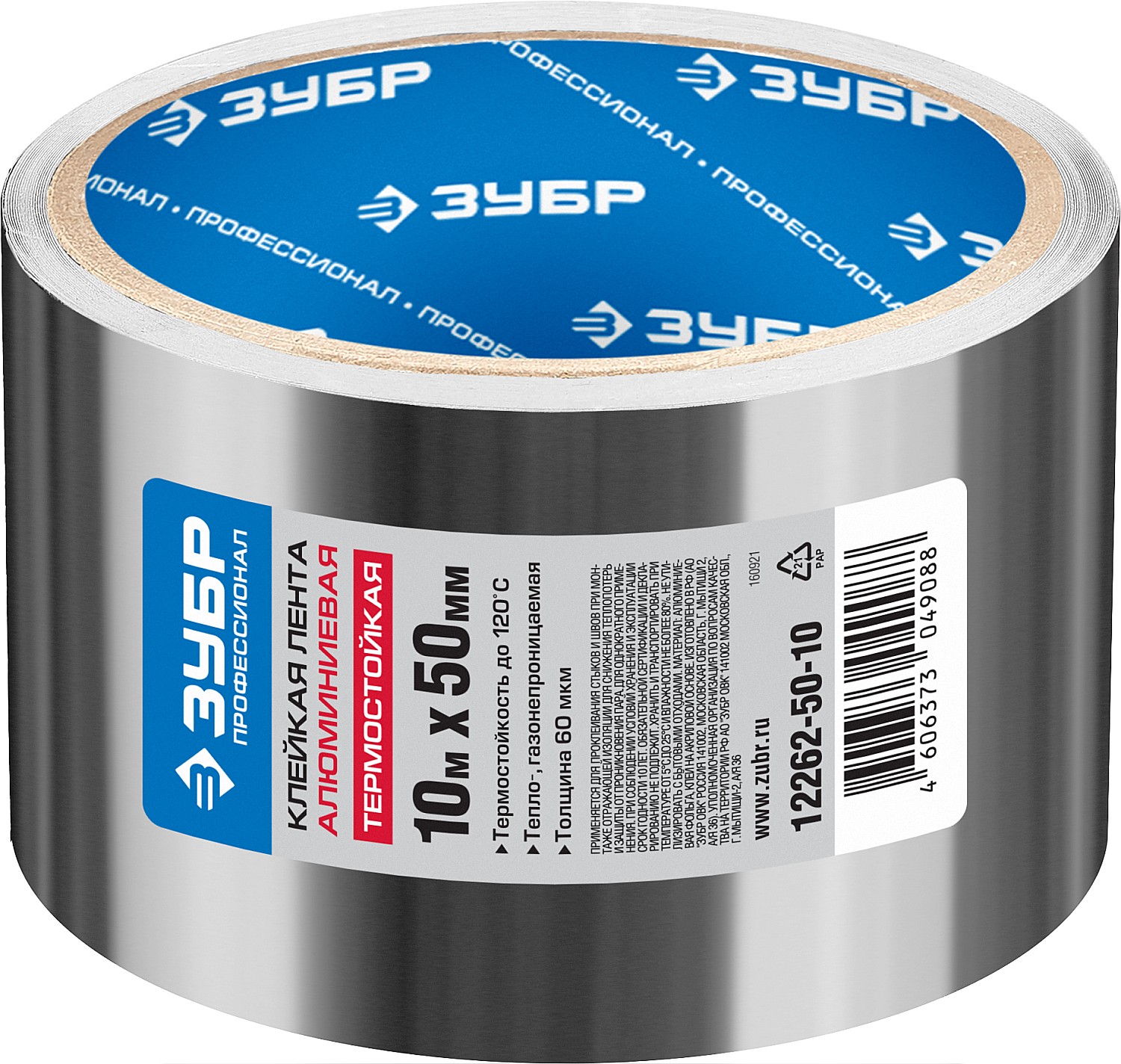 ЗУБР 50 мм, 10 м, 60 гр/м2, самоклеящаяся алюминиевая лента, Профессионал (12262-50-10)