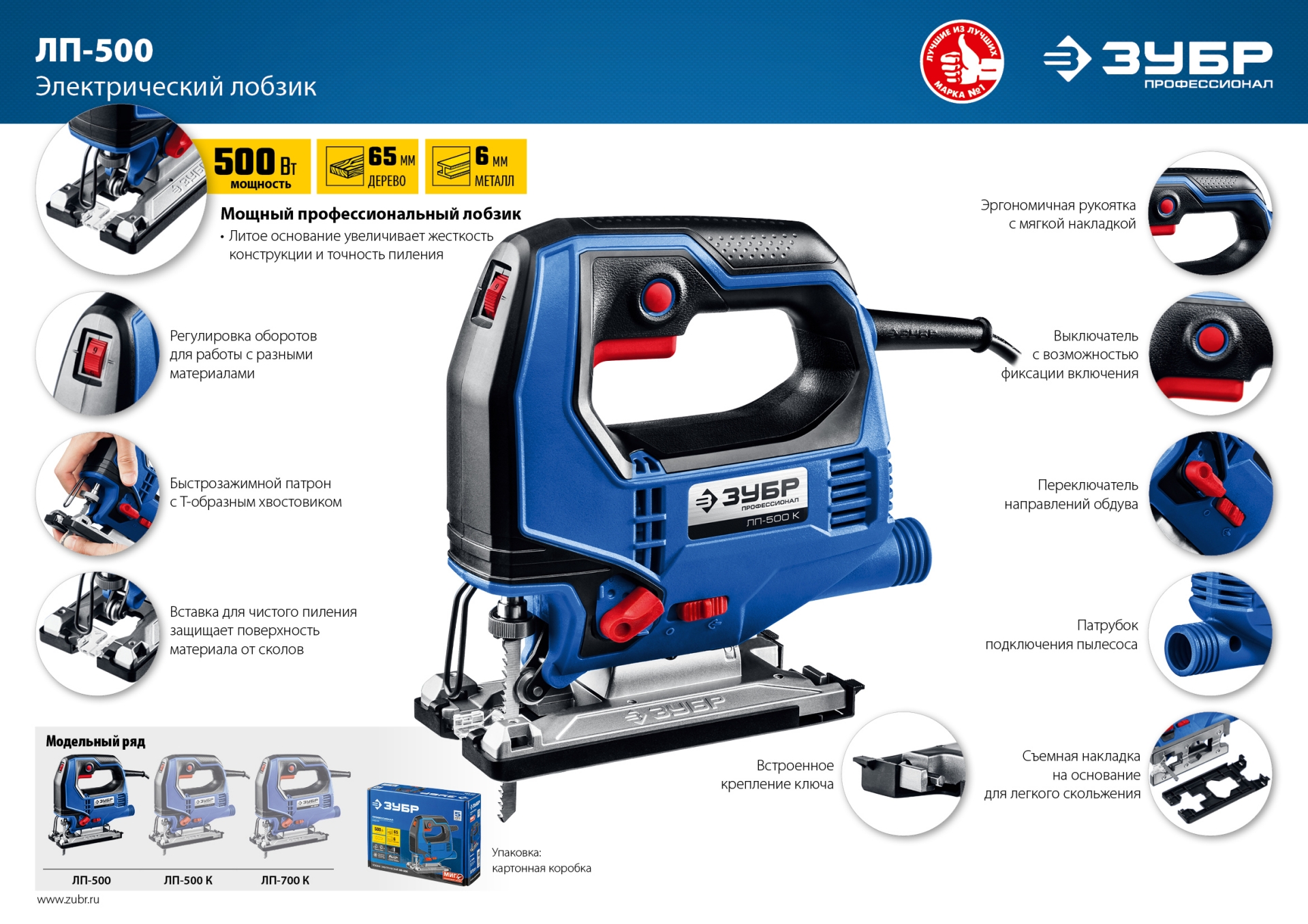 ЗУБР 500 Вт, 65 мм, электрический лобзик, Профессионал (ЛП-500)