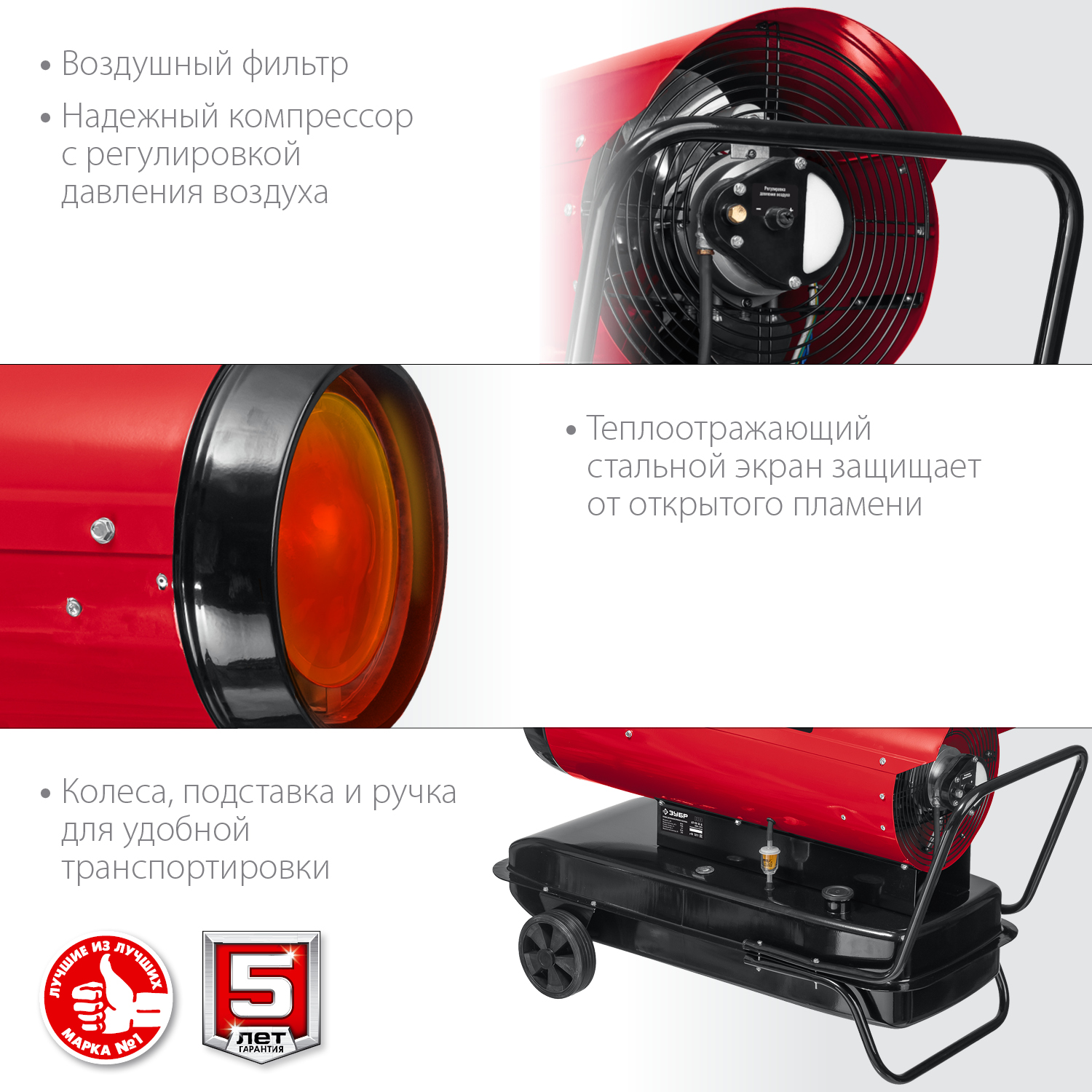 Высокоэффективный дизельный теплогенератор прямого нагрева работающий на дизельном топливе для всех климатических условий. Оптимально подходит для сушки и прогрева на строительных площадках складских комплексов и проветриваемых помещений. Надежный поджиг и эффективное горение гарантируют безотказную подачу тепла в любых условиях эксплуатации. Сделано в России