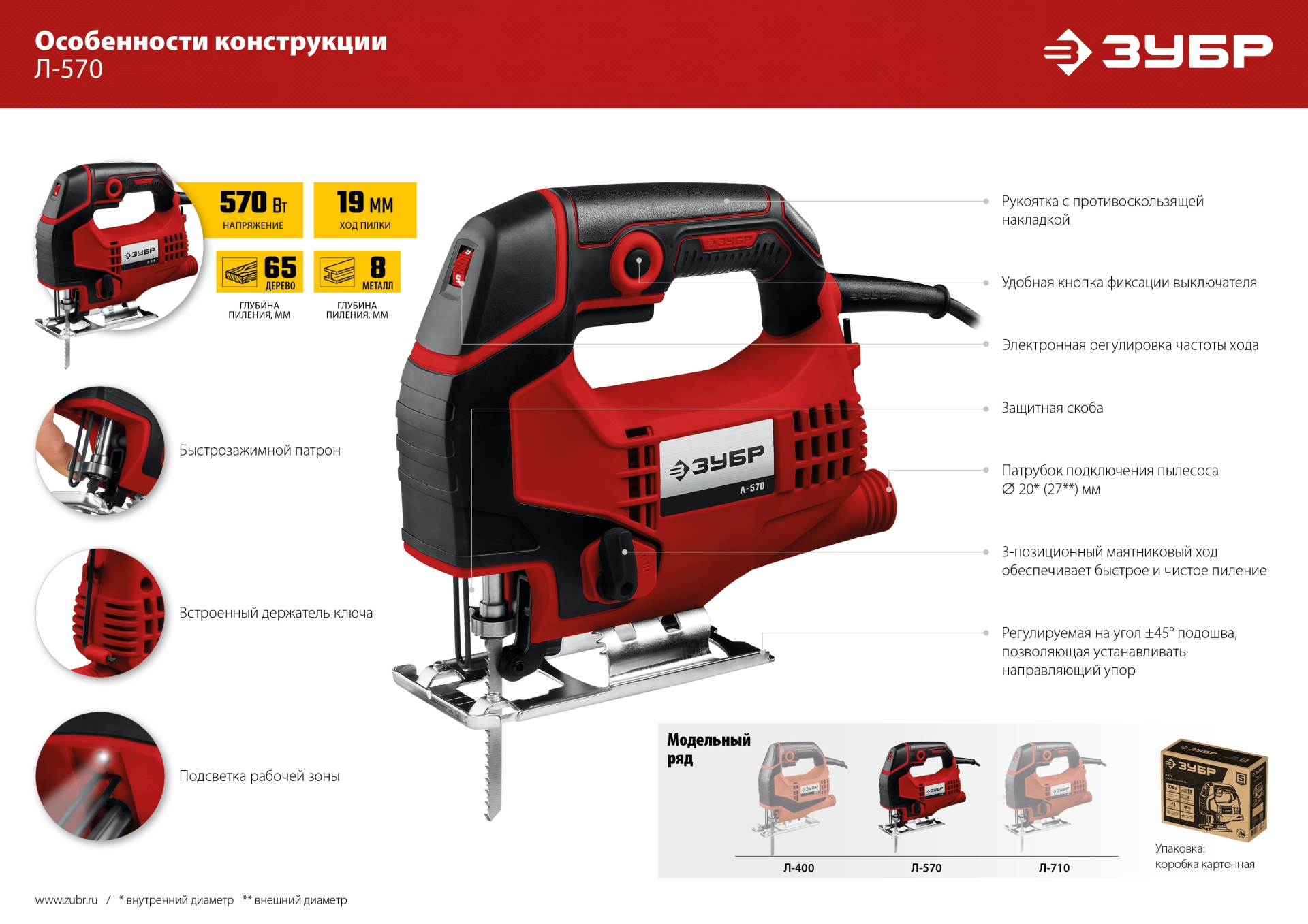 - Встроенная подсветка рабочего места для лучшего обзора линии реза