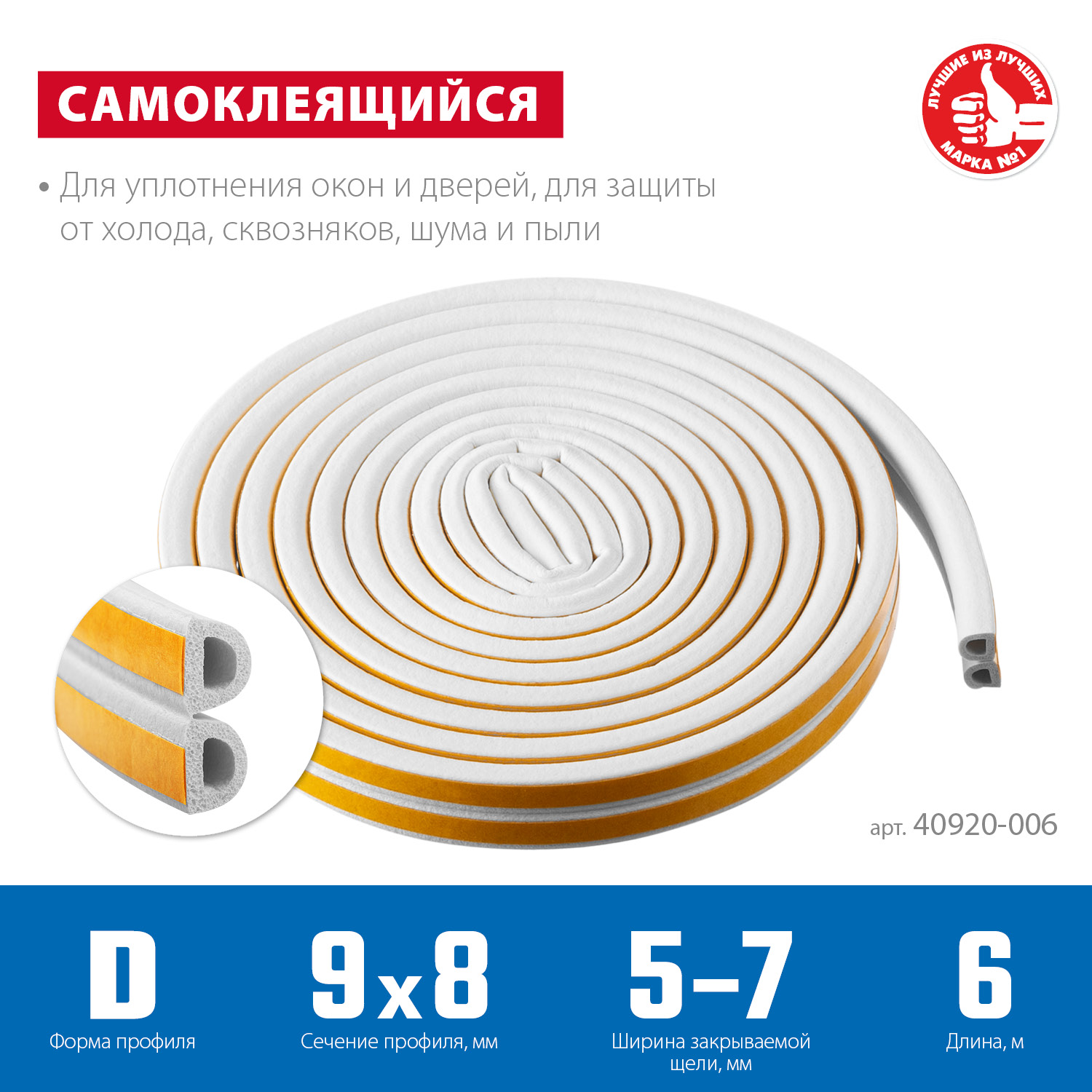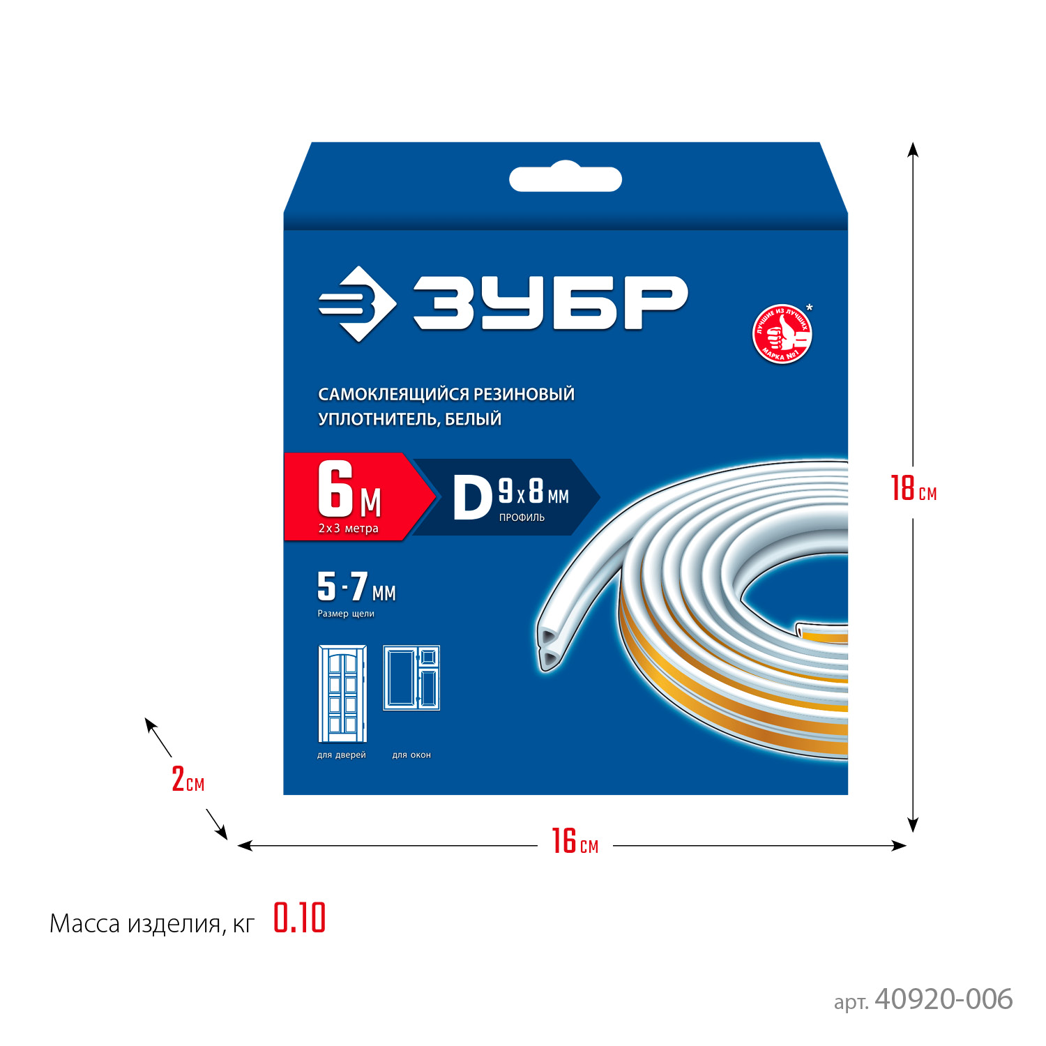 Уплотнитель ЗУБР предназначен для уплотнения окон и дверей. Помогает сохранить в доме тепло зимой и прохладу летом, оберегает от холода, сквозняков, шума и пыли.