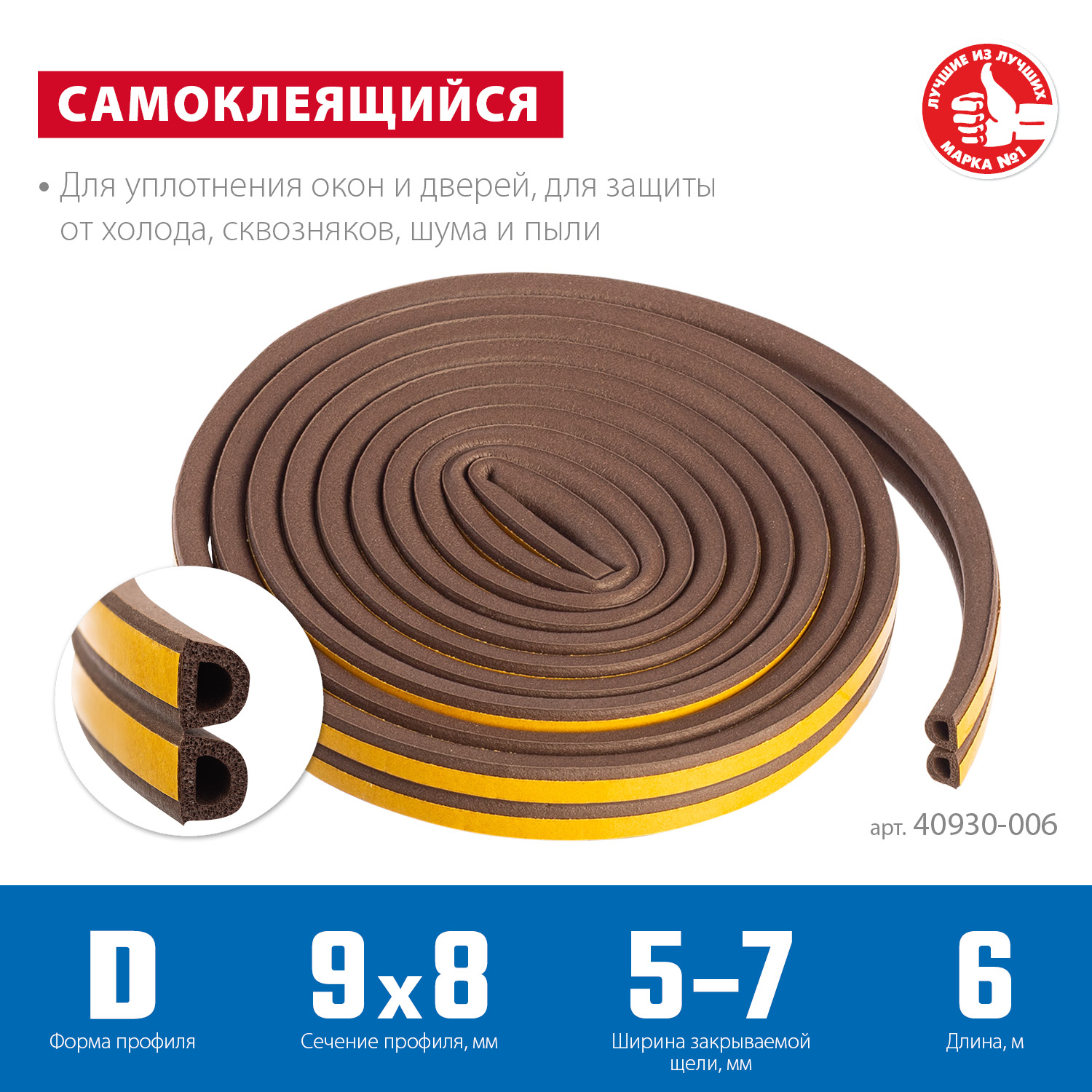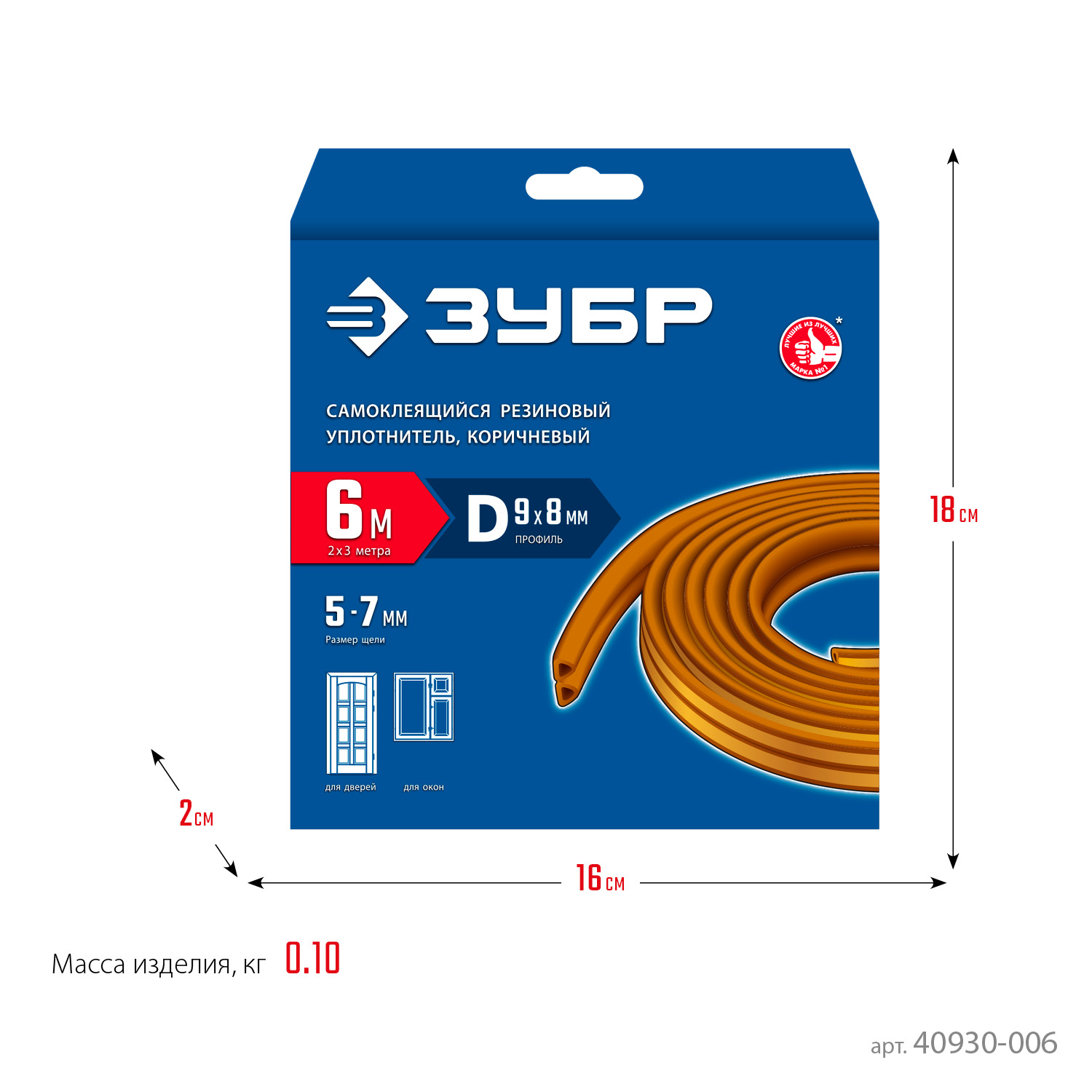 Уплотнитель ЗУБР предназначен для уплотнения окон и дверей. Помогает сохранить в доме тепло зимой и прохладу летом, оберегает от холода, сквозняков, шума и пыли.