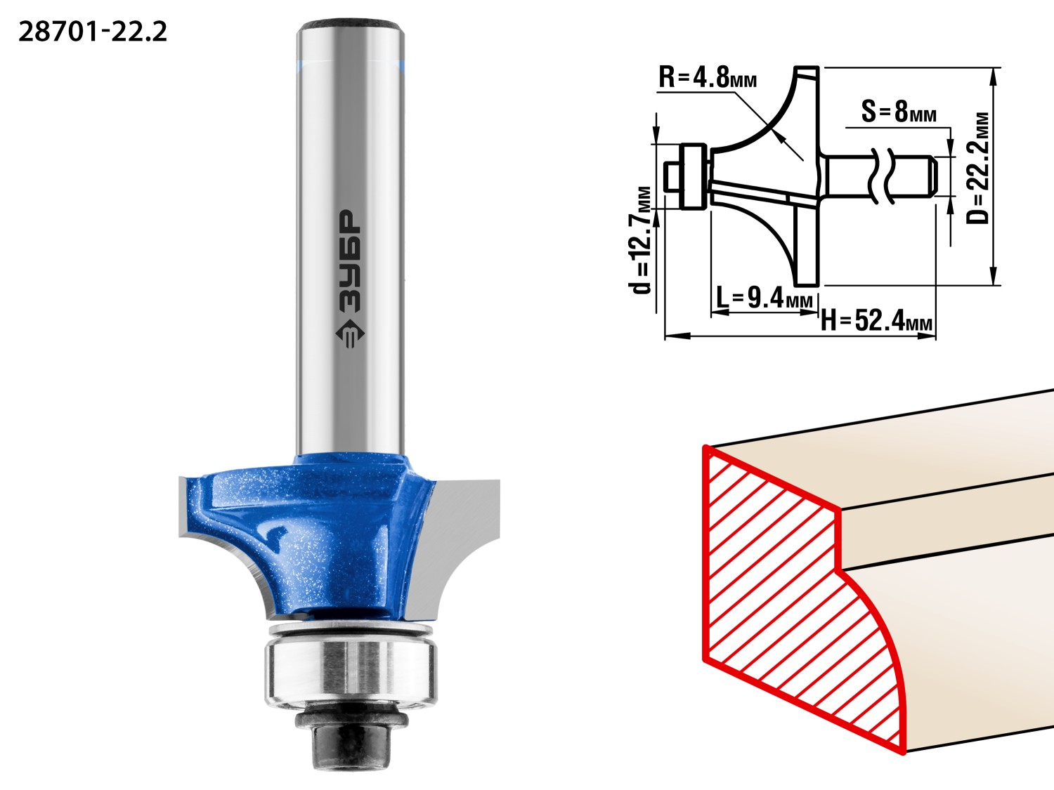Фреза отлично подходит для скругления кромок при обработке столешниц, полок, шкафов и прочих работ с разнообразными видами древесины