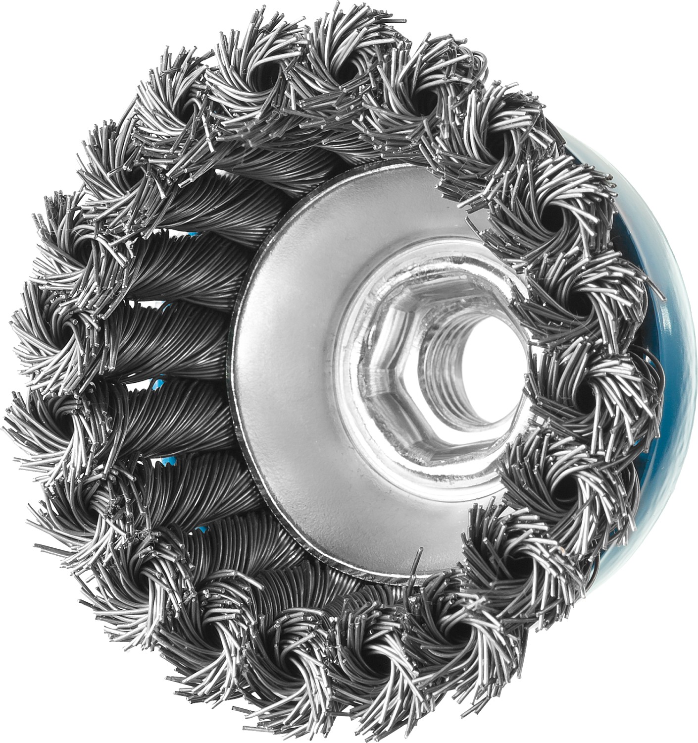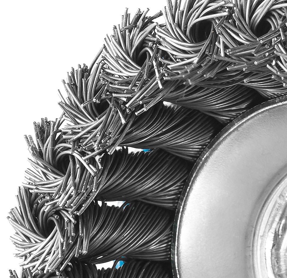 - Повышенный ресурс щетки благодаря еще более высокой жесткости сплетенного пучка и увеличенной толщине проволоки