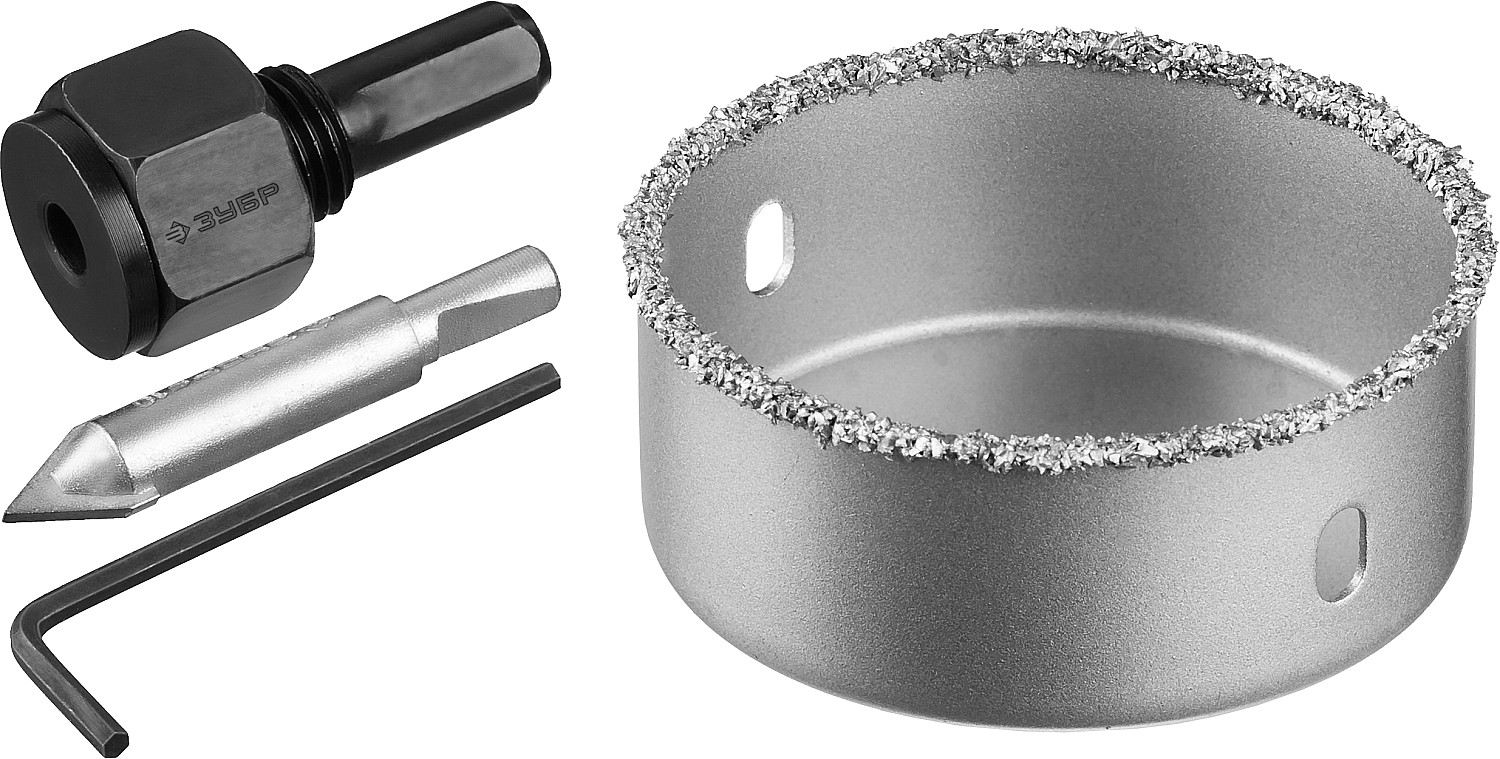 Применяется для получения ровных отверстий в облицовочных материалах, а также в ячеистом бетоне, кирпиче и гипсокартоне. Используется на дрелях и легких перфораторах в режимме безударного сверления.