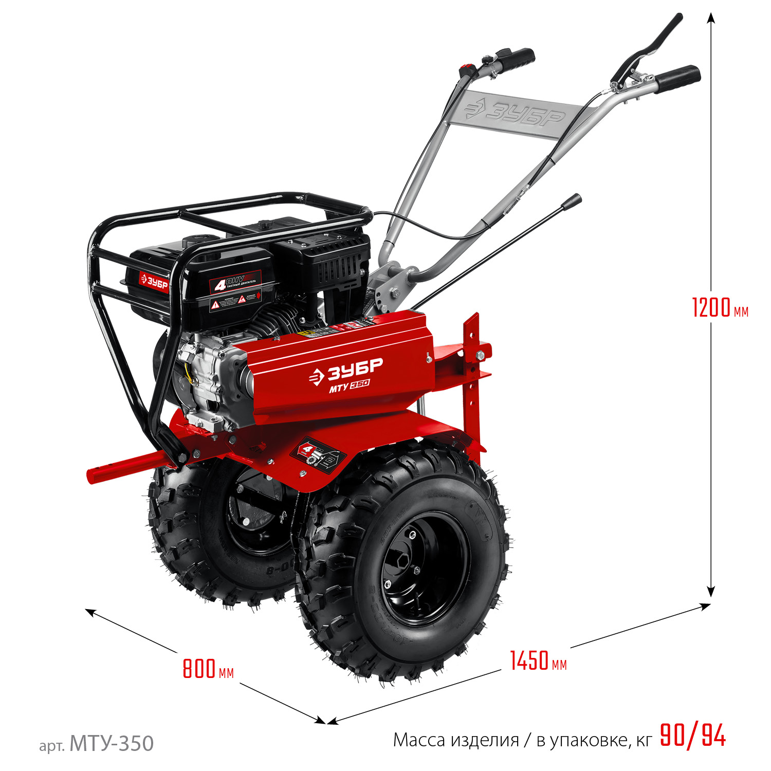 - 4 скорости вперед (основная и повышающая) и 2 назад позволяют комфортно работать на любых типах почвы