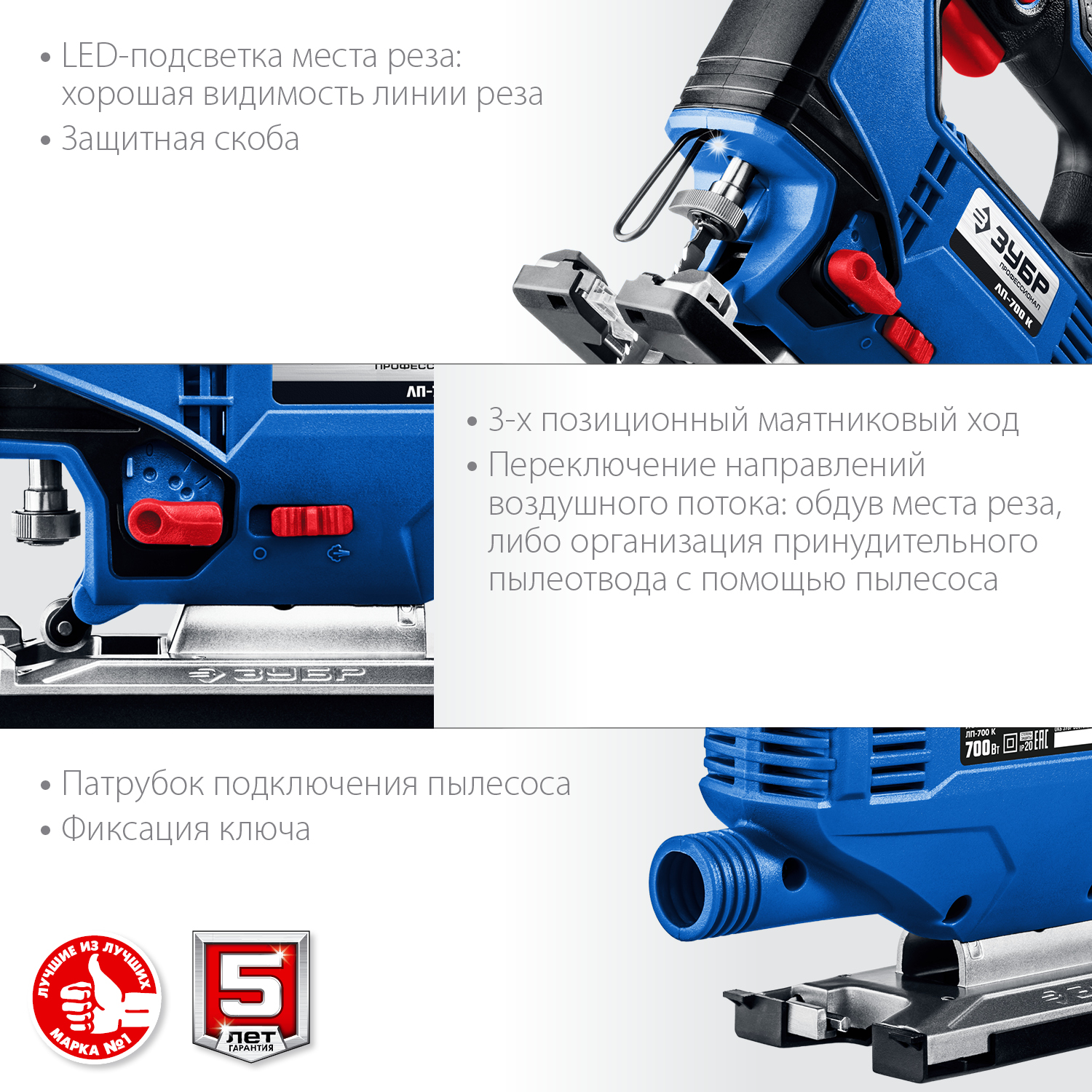 - 3-позиционный маятниковый ход для обеспечения как быстрого, так и чистого пиления