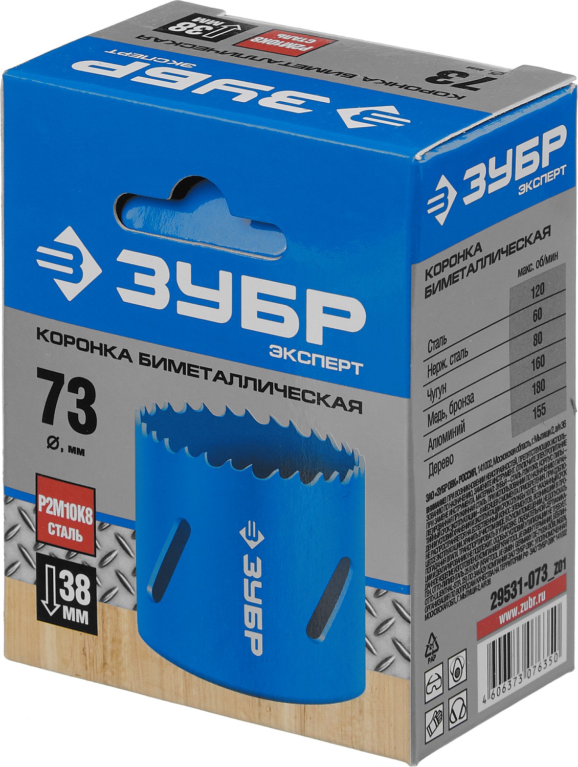 ЗУБР 73 мм, сталь Р6М5, биметаллическая коронка (29531-073)
