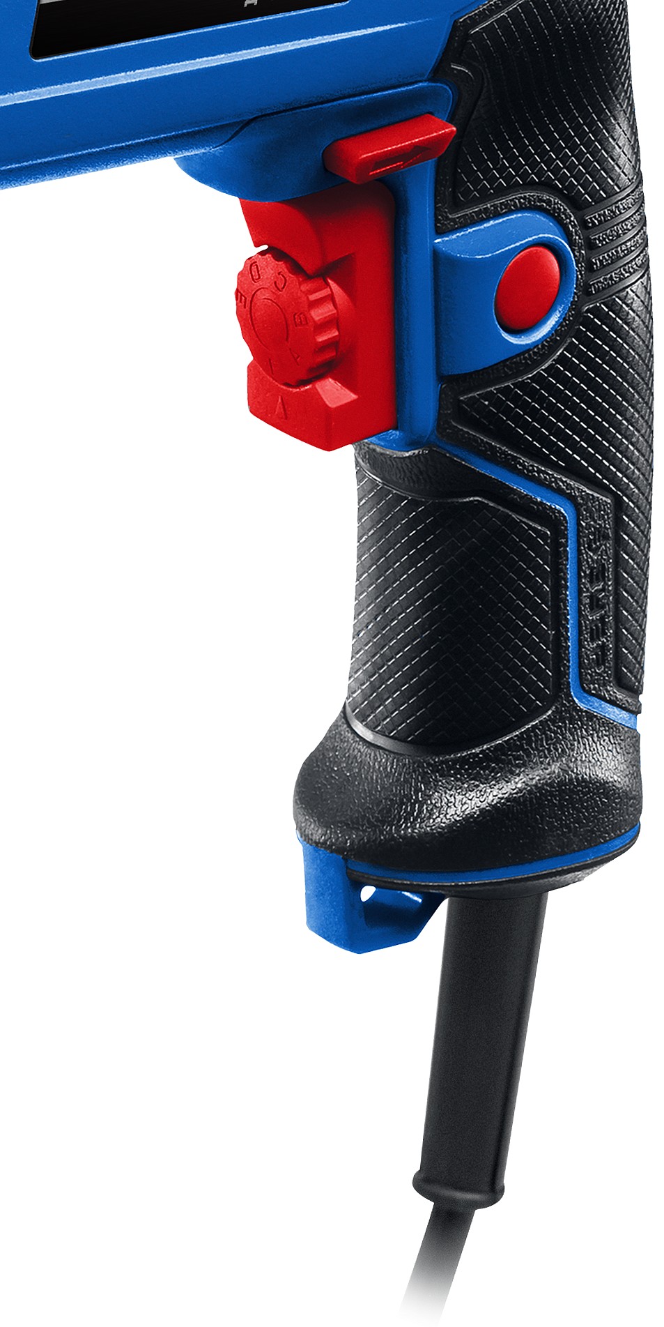 - Надежное удержание дрели благодаря обрезиненной основной и удобной дополнительной рукояткам