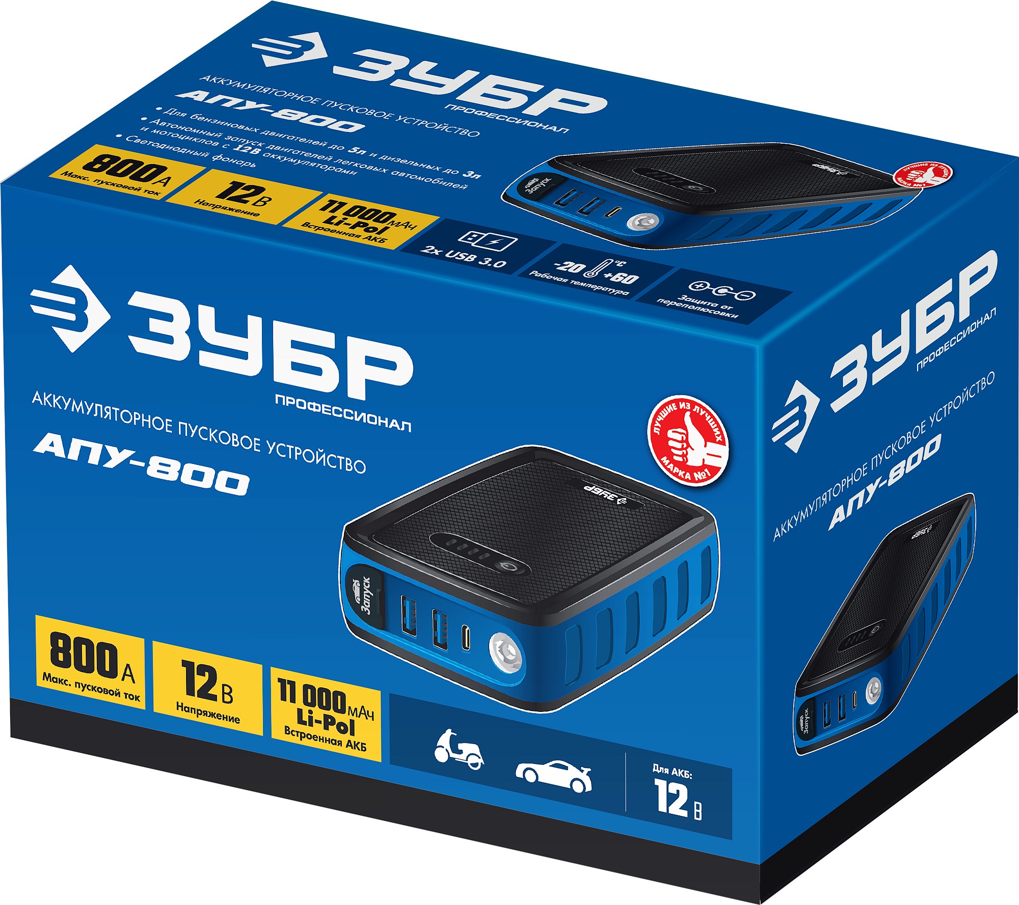ЗУБР АПУ-800, 12 В, макс. 800 А, аккумуляторное пусковое устройство, Профессионал (59319)