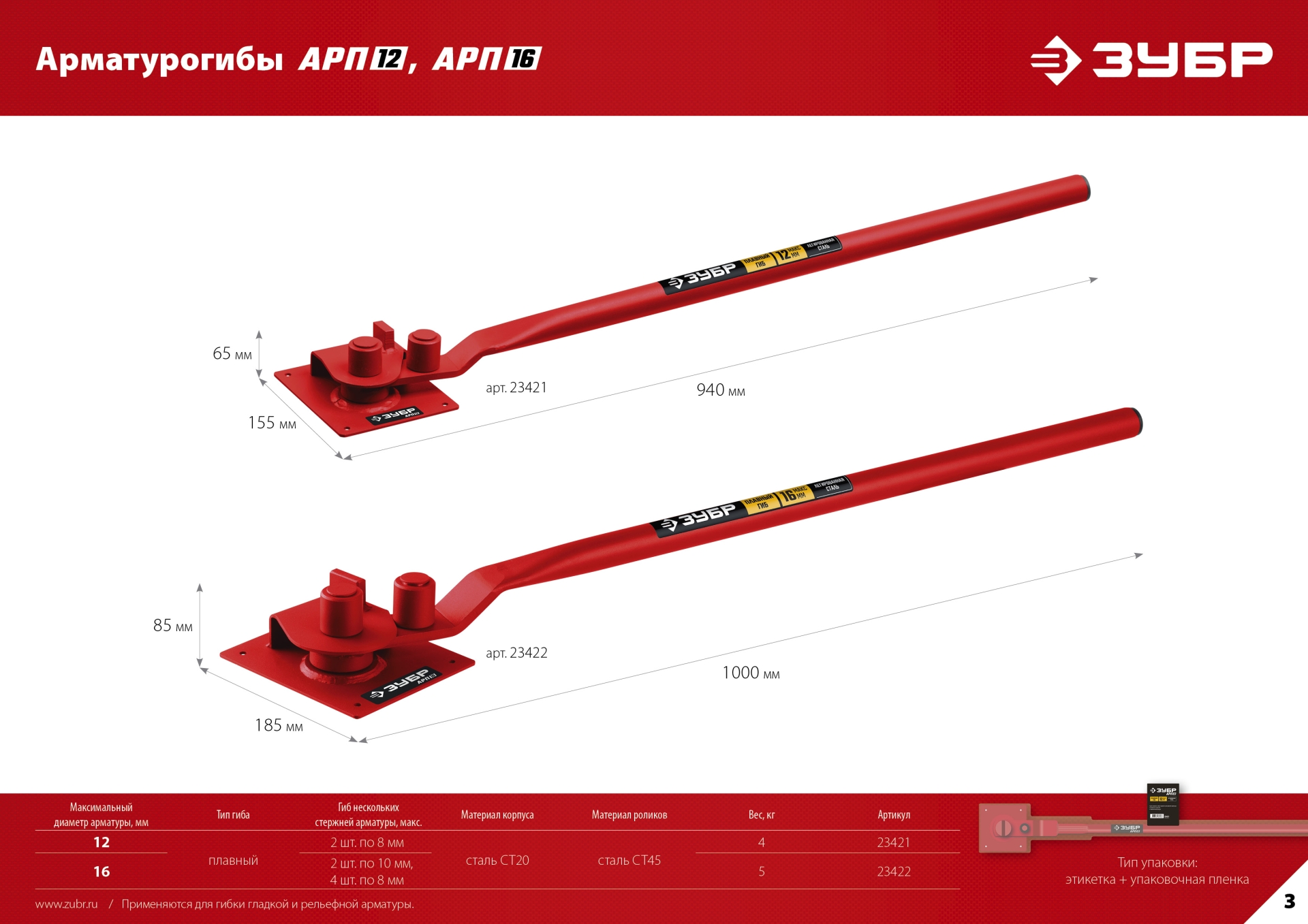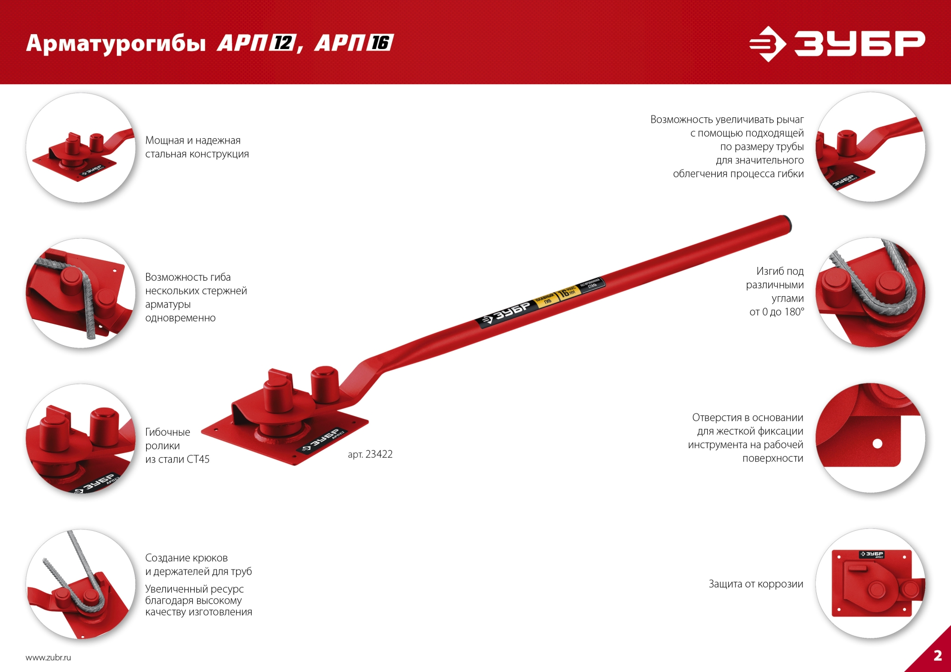 Профессиональный Арматурогиб ЗУБР для плавного гиба гладкой и рельефной арматуры Закалёная сталь Усиленная конструкция Создание крюков и держателей для труб Возможность увеличивать рычаг для облегчения процесса гибки Отверстия для надёжной фиксации Увеличенный ресурс