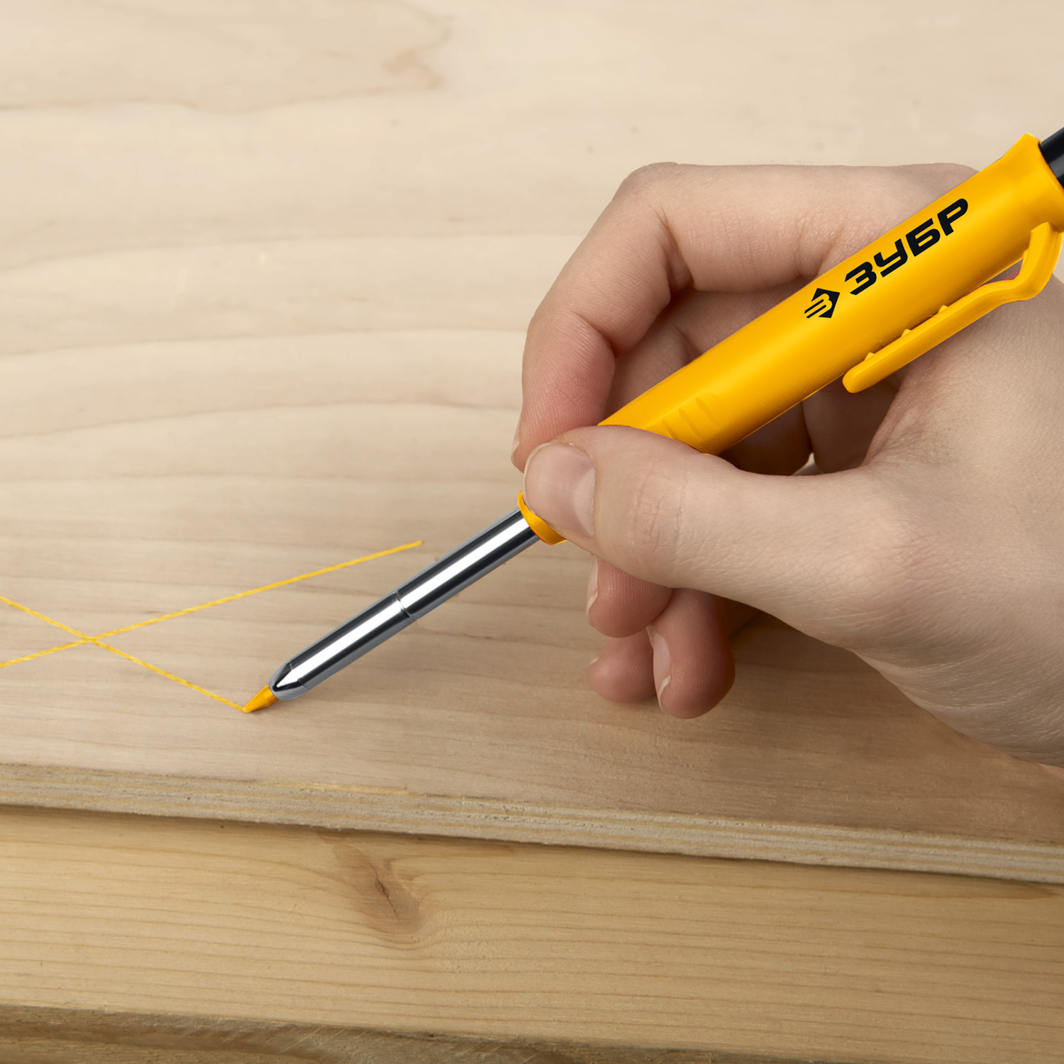 Автоматический строительный карандаш подходит для нанесения разметки на большинство материалов. Не выгорает на солнце, устойчив к температурным перепадам. Безопасен для человека и окружающей среды, т.к. не содержит токсических веществ.