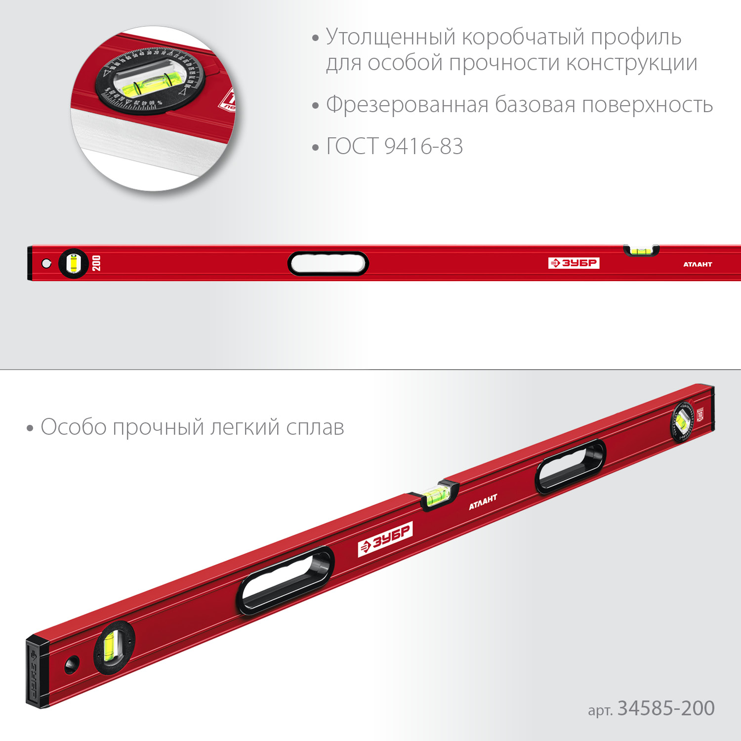 Усиленный коробчатый уровень с фрезерованной базовой поверхностью и рукоятками
