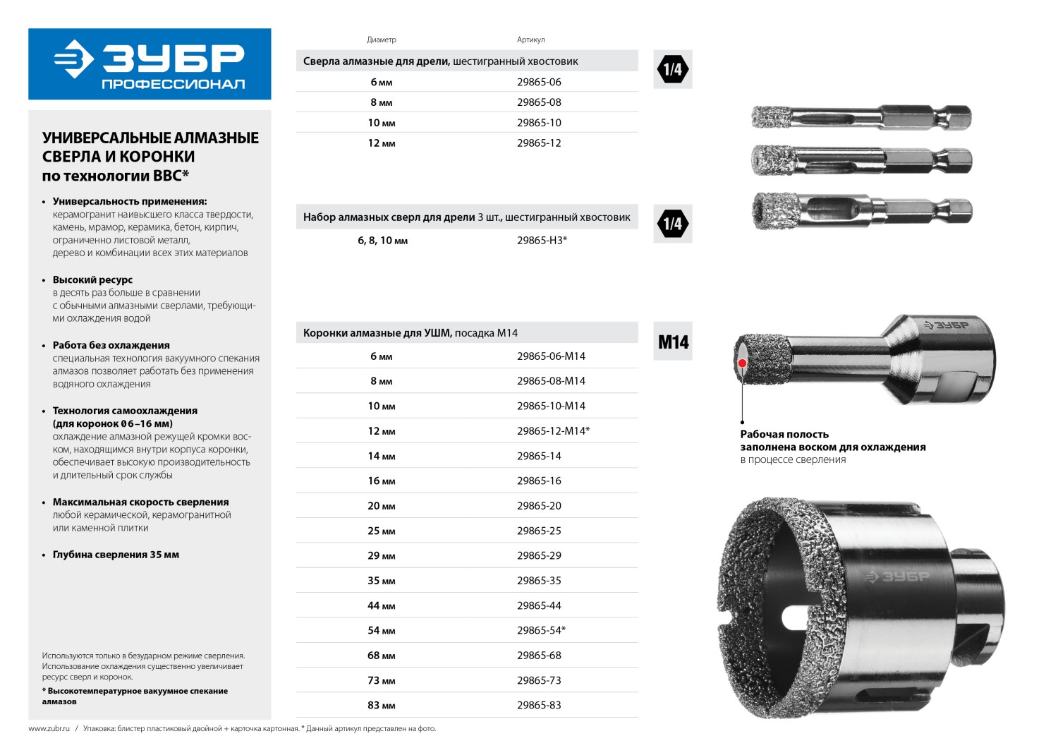 Алмазные вакуумные коронки ЗУБР - синтез опыта и высоких технологий для превосходных результатов работы.