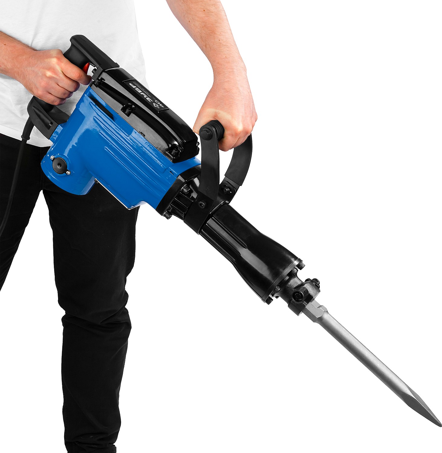 - Отбойный молоток с огромной силой удара при относительно небольшом весе. Обладает мощностью, достаточной для разрушения практически любых конструкций