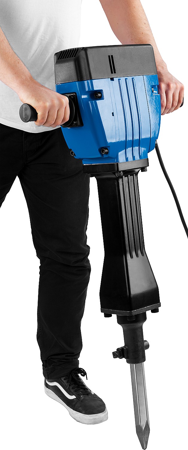 Один из наиболее мощных инструментов на рынке с энергией удара 60 Дж. Подходит для разрушения конструкций любого типа. Удобный двуручный хват позволяет надежно удерживать инструмент, а значительный вес инструмента сам создает необходимое давящее усилие для эффективной работы