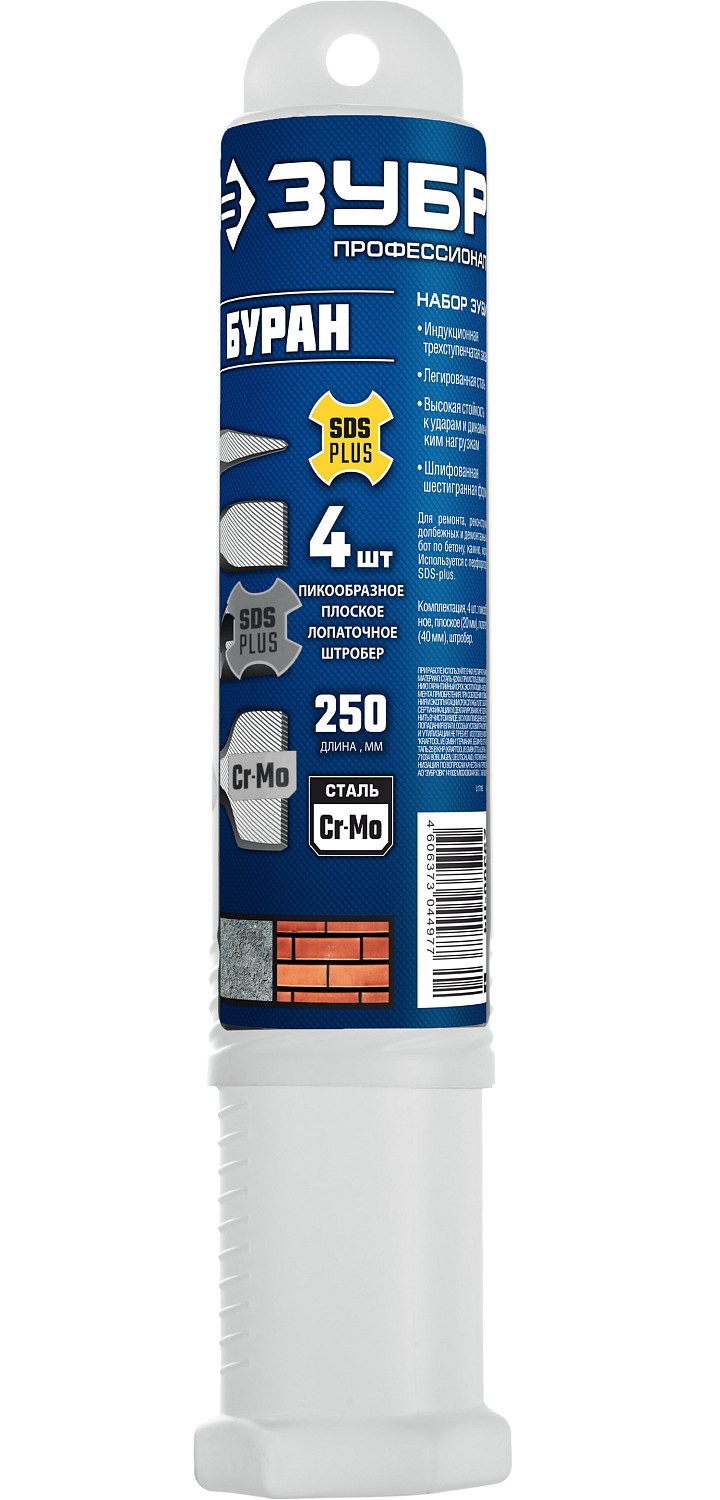 Комплектация: 4 шт.: пиковое, плоское, лопаточное, штробер.