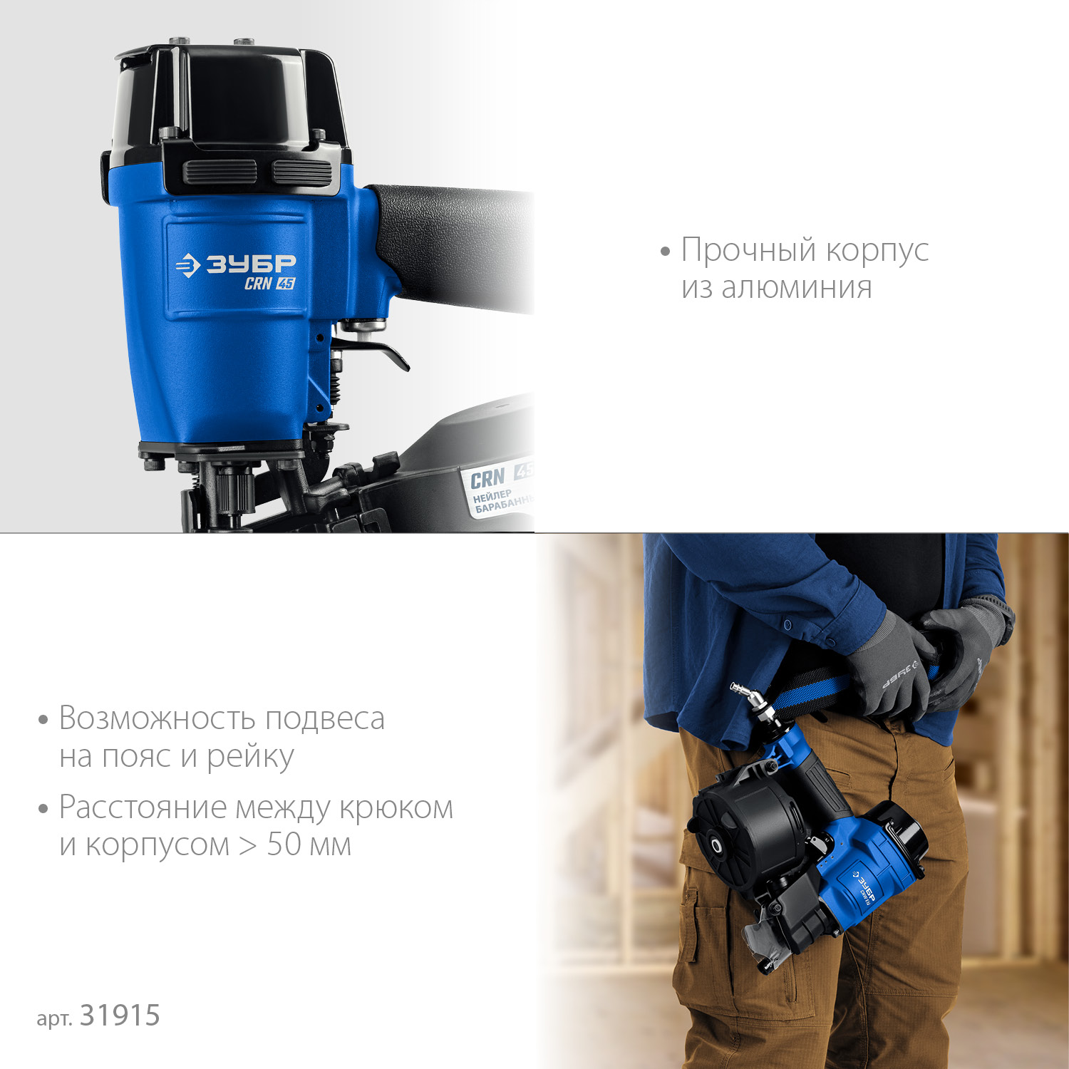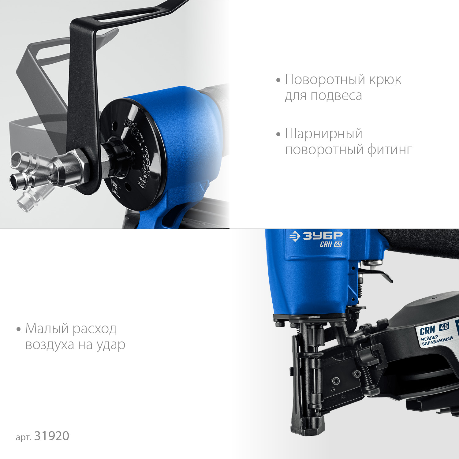 Нейлер пневматический кровельный предназначен для кровельных работ с гвоздями барабанного типа длинной 22-45 мм, в частности монтажа гибкой черепицы. Справится с ремонтом, соединением других деревянных деталей.