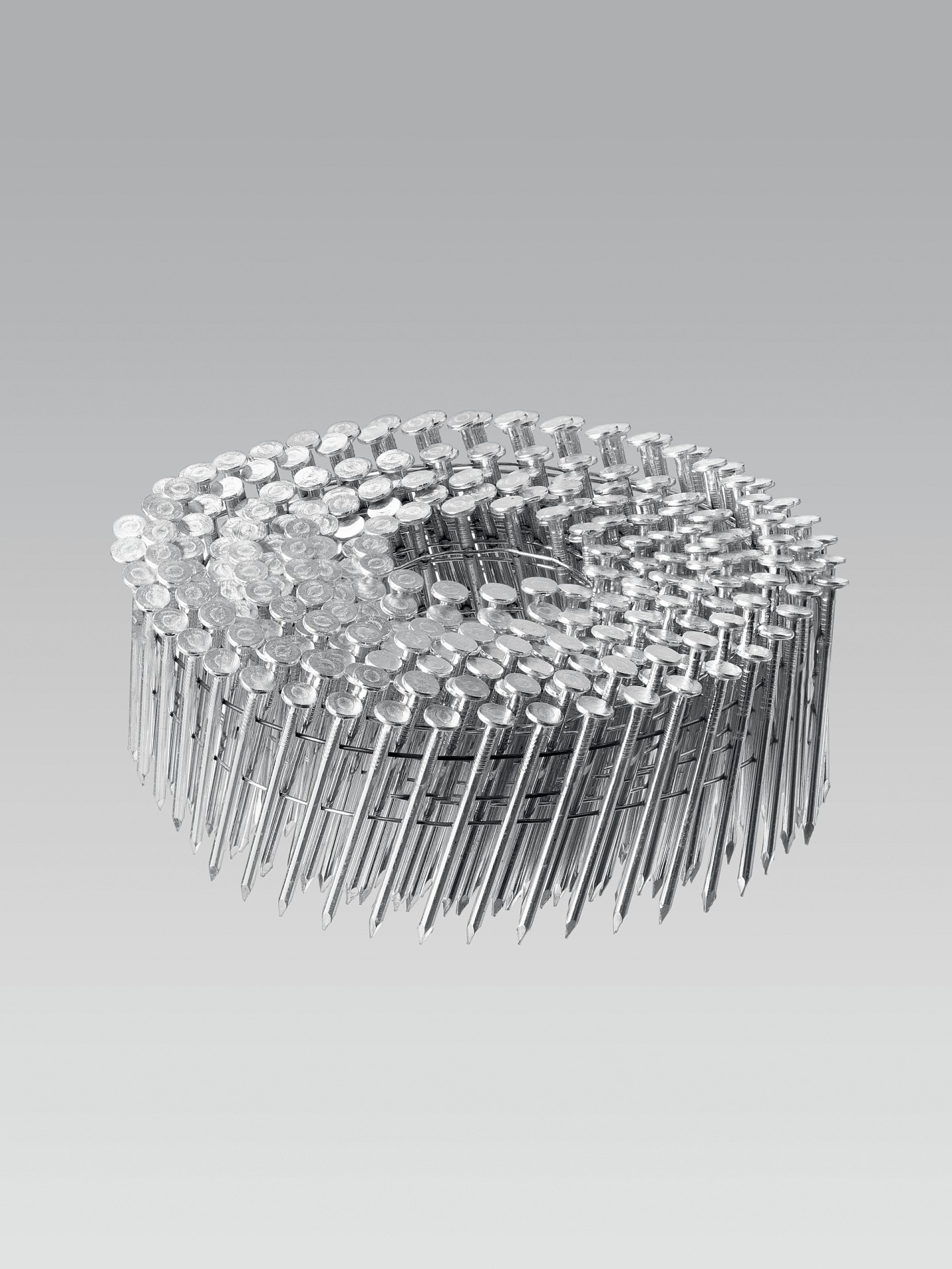 Барабанные гвозди для сайдинга соединены в обойму под углом 16° и забиваются при помощи гвоздезабивного пистолета (нейлера). Уменьшенный диаметр гвоздя оптимален для крепления сайдинга. Использование нейлера обеспечивает высокую скорость монтажа и удобство в работе.
