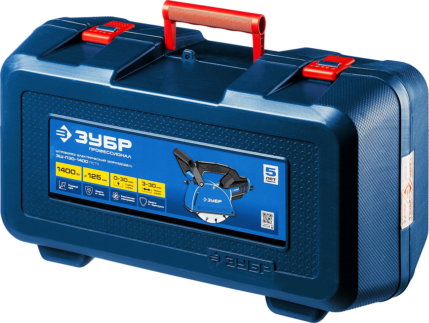 Профессиональный штроборез ЗУБР для выполнения штроб глубиной до 30 мм в легких и средних бетонах. Расширенная (по сравнению с ЗШ-П30-1400 ПСТ) комплектация включает удобный кейс для хранения и переноски. Легкость и компактность позволяют длительно держать его на весу при работе на вертикальных поверхностях